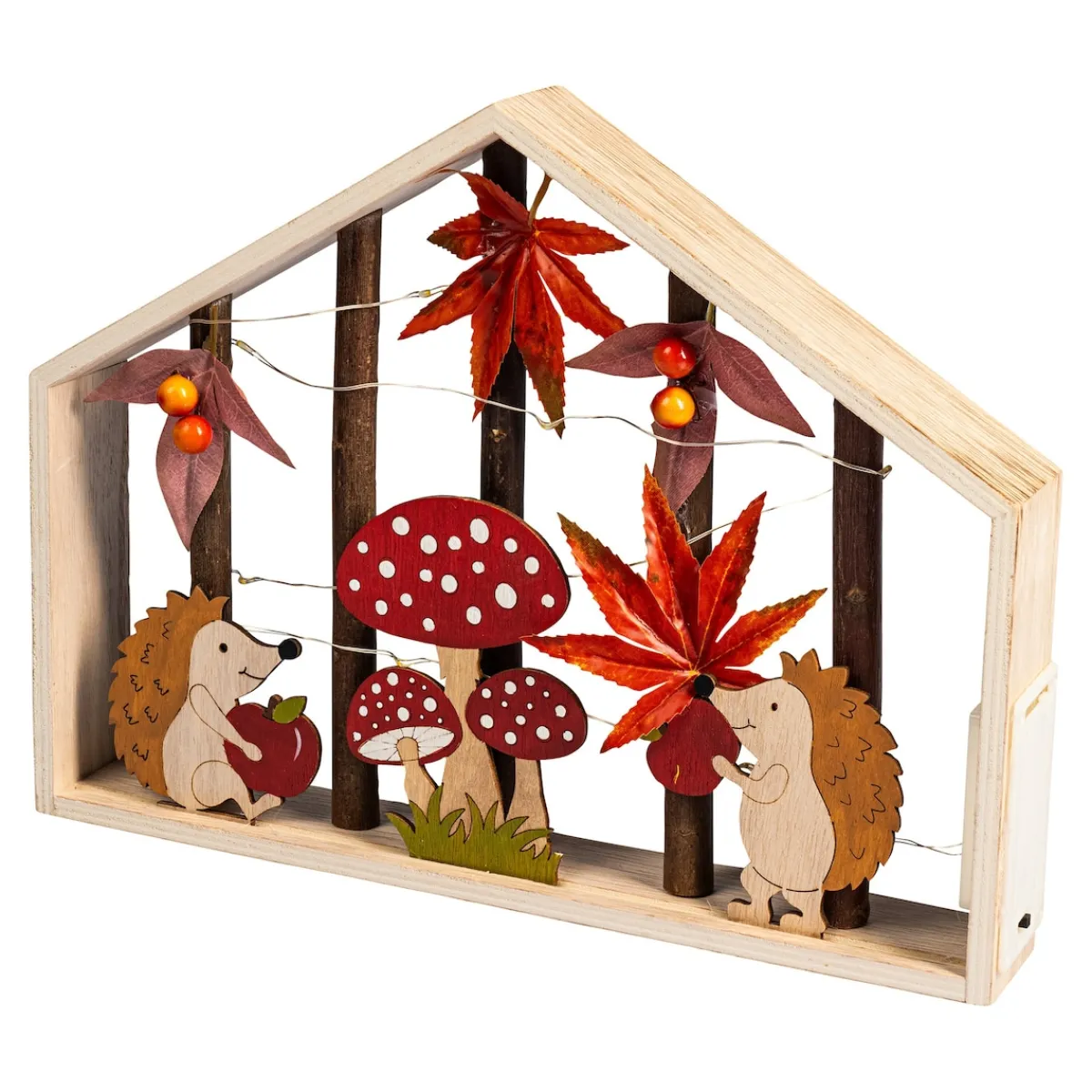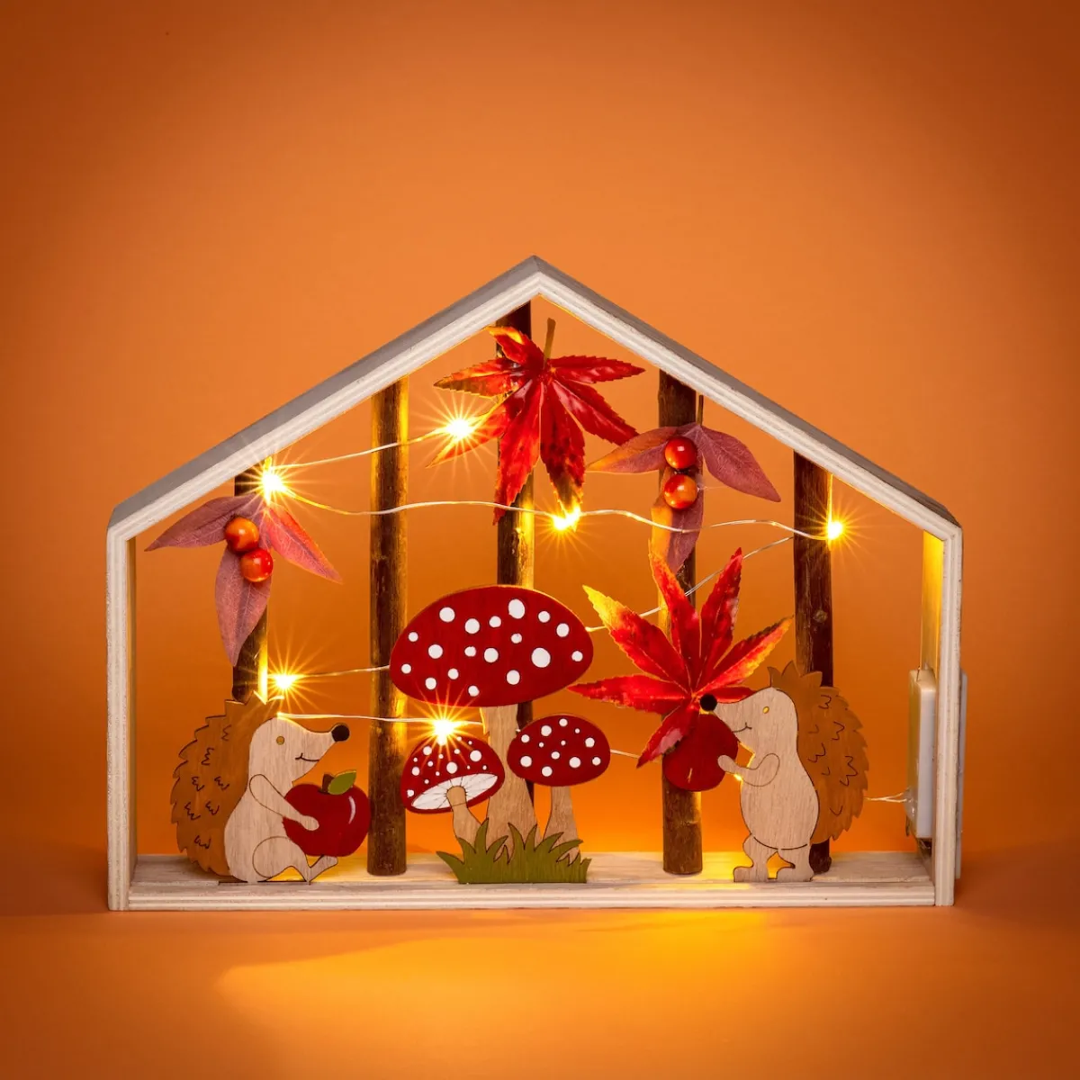 Begleitet vom warmen Schein der LED-Lichterkette bereiten sich diese beiden Igelfreunde eifrig auf den Winterschlaf vor – und machen es sich dabei in ihrer Hütte so richtig gemütlich! Da möchte man sich am liebsten gleich dazu gesellen.