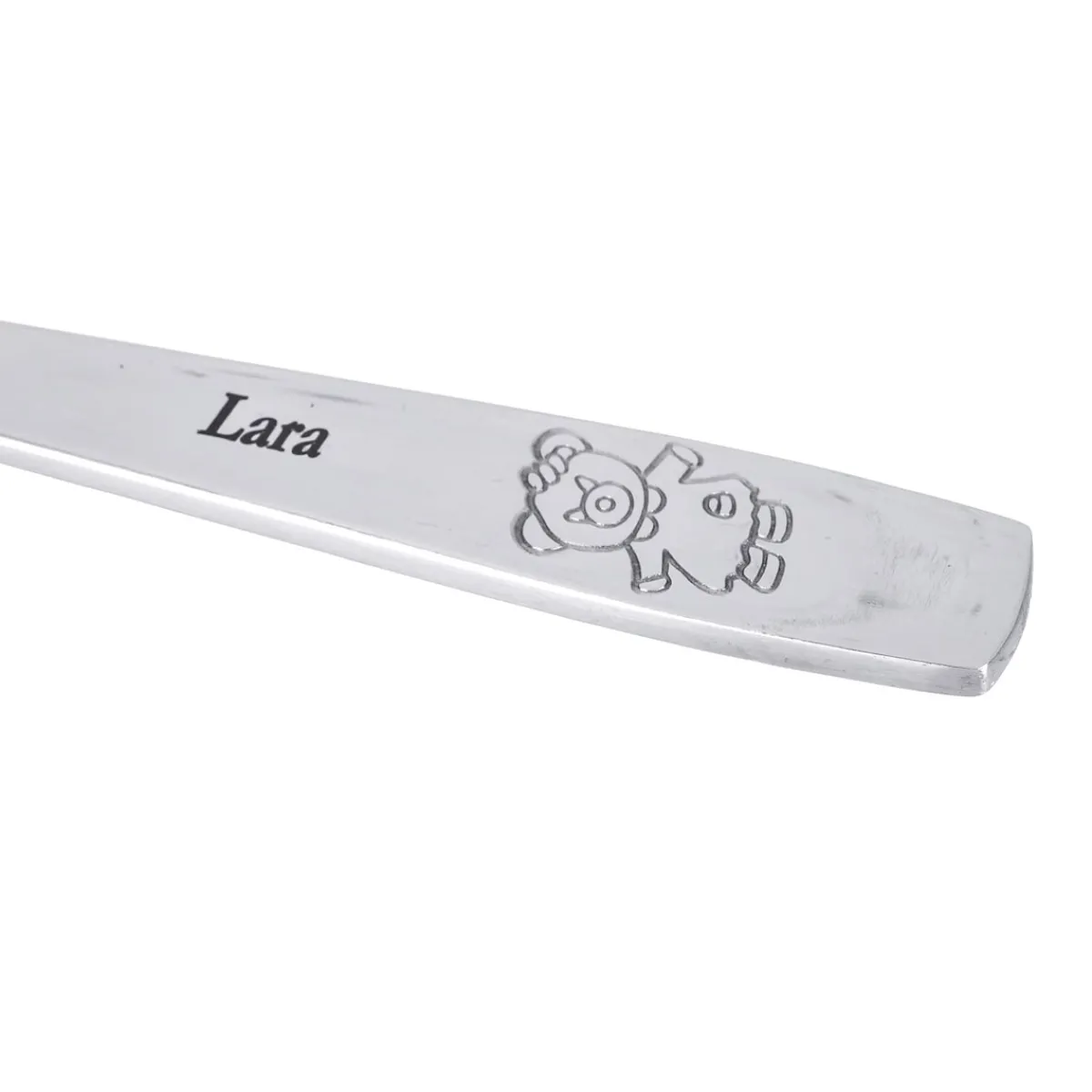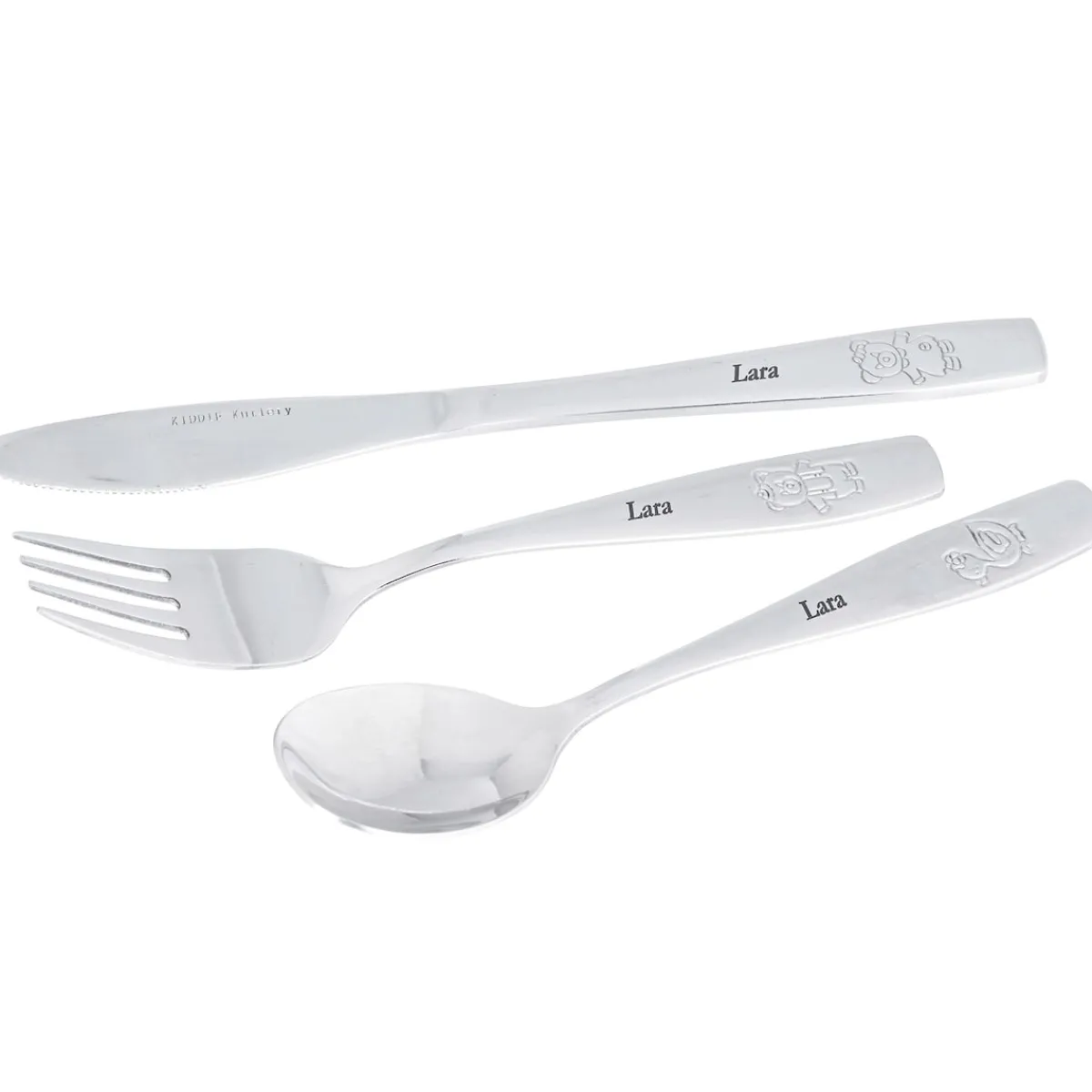 Die niedlichen Tiermotive sorgen gleich für gute Laune beim Ansehen und Benutzen des Bestecks. Über den Tiermotiven lässt sich der Name des Kindes individuell eingravieren.