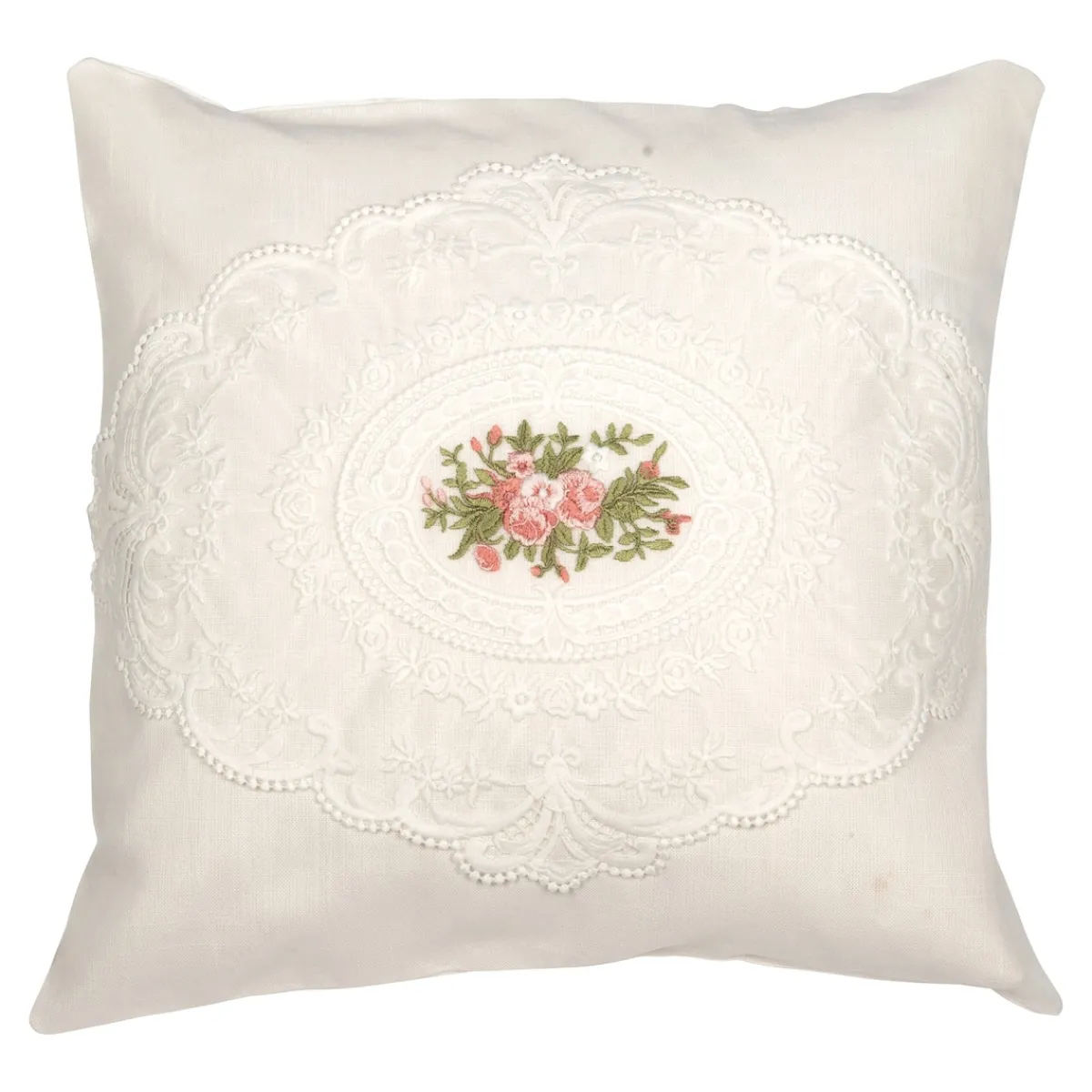 Diese Kissenhülle verleiht Ihrem Zuhause ein Gefühl von königlichem Flair. Mit filigraner Rosenstickerei und einer zart gearbeiteten Spitzenborte bringt sie nostalgische Eleganz in jeden Wohnraum. Das aufwendig gestaltete Design erinnert an klassische Salons vergangener Zeiten – ein stilvoller Blickfang auf Sofa, Sessel oder Bett. Gönnen Sie sich diesen Hauch von Luxus und lassen Sie Ihr Heim in neuer Pracht erblühen.