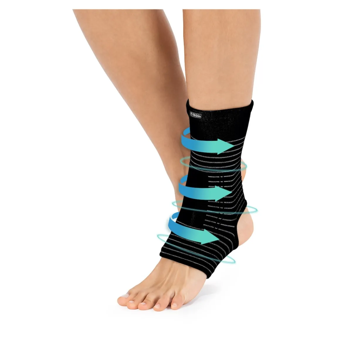 Die TRIGGin Knöchelbandage mit Kupfer- und Carbonfasern bietet gezielte Unterstützung bei leichten Fußbeschwerden. Kupferfasern leiten Ihre Körperwärme sanft weiter und schaffen so ein angenehmes Klima am Knöchel.