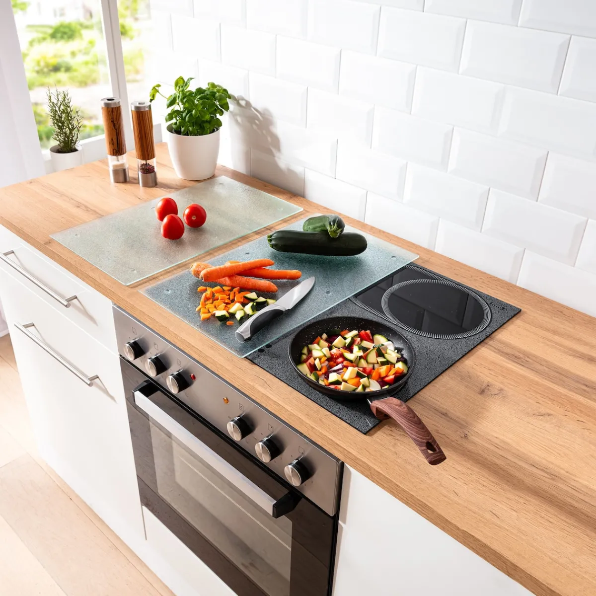 In Ihrer Küche ist zu wenig Platz? Dann bedecken Sie Ihr Kochfeld doch ganz einfach mit der Kochfeld-Abdeckplatte! Auch als Spritzschutz für die Rückwand zu verwenden. Aus schlagfestem, hitzebeständigem Glas mit kratzfester Oberfläche und rutschhemmenden Füßen – für sicheres Arbeiten.
