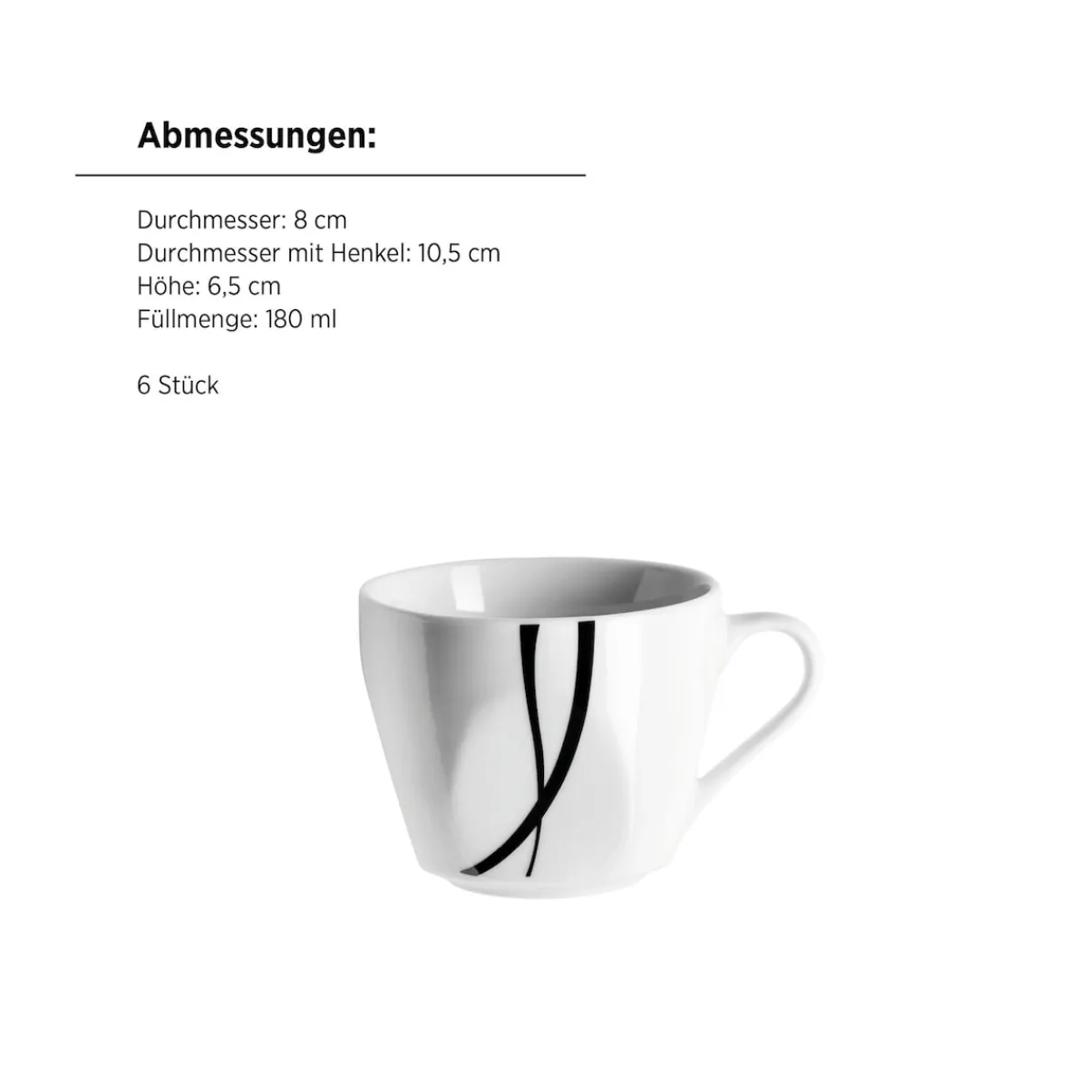 Mehr als nur weißes Geschirr: „Decora“ kombiniert klassisches weißes Porzellan mit modernen Formen und einem zeitlosen, schwarzen Dekor. Das Porzellangeschirr punktet mit eckig anmutenden Formen und schönem Glanz. An „Decora“ werden Sie sich gewiss viele Jahre erfreuen können. Die Serie bietet Speiseteller, tiefe Teller, Dessertteller und Kaffeetassen mitsamt Untertassen. Das pflegeleichte Geschirr ist zu 100% alltagstauglich und für Spülmaschine sowie Mikrowelle geeignet.