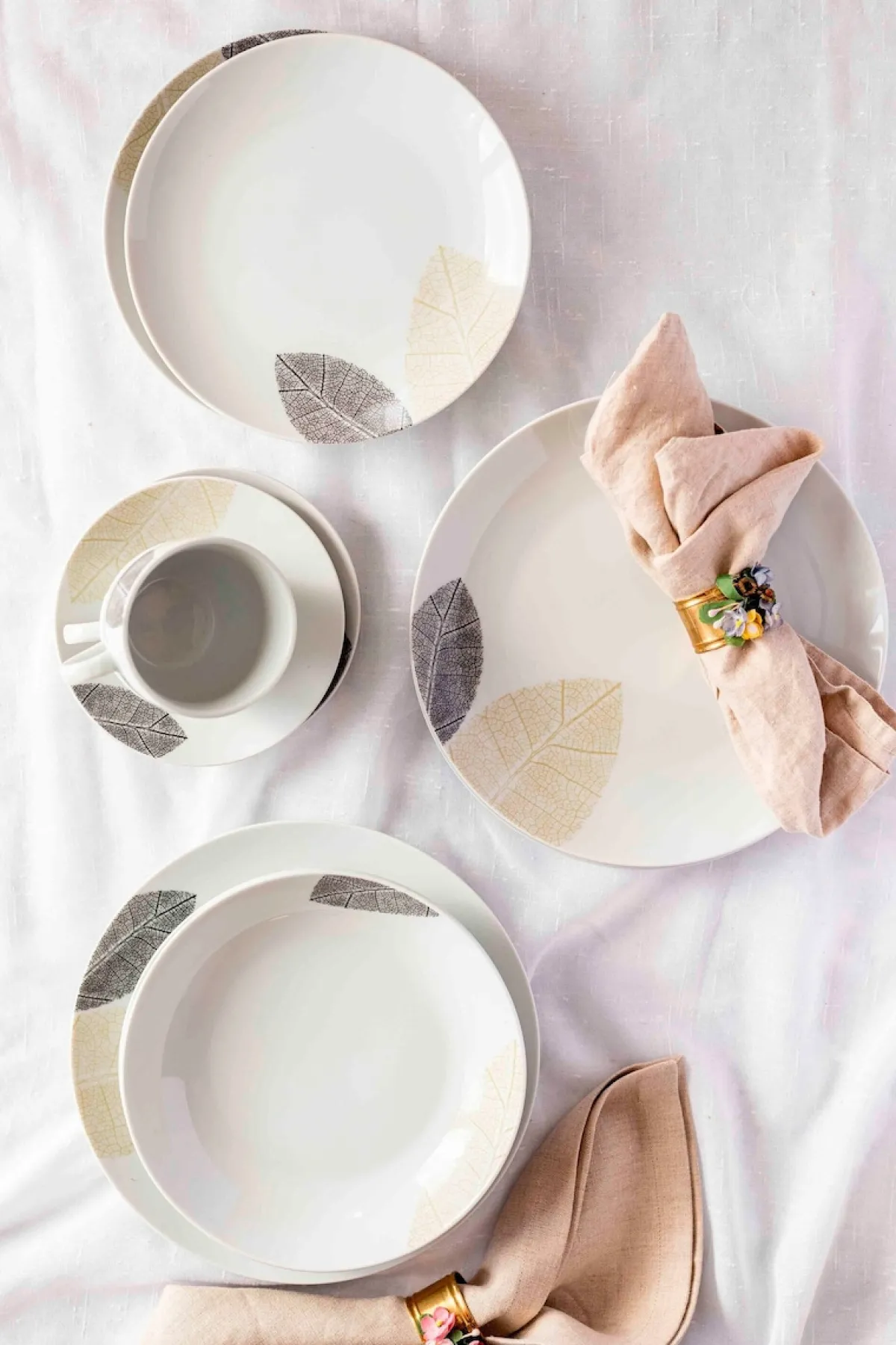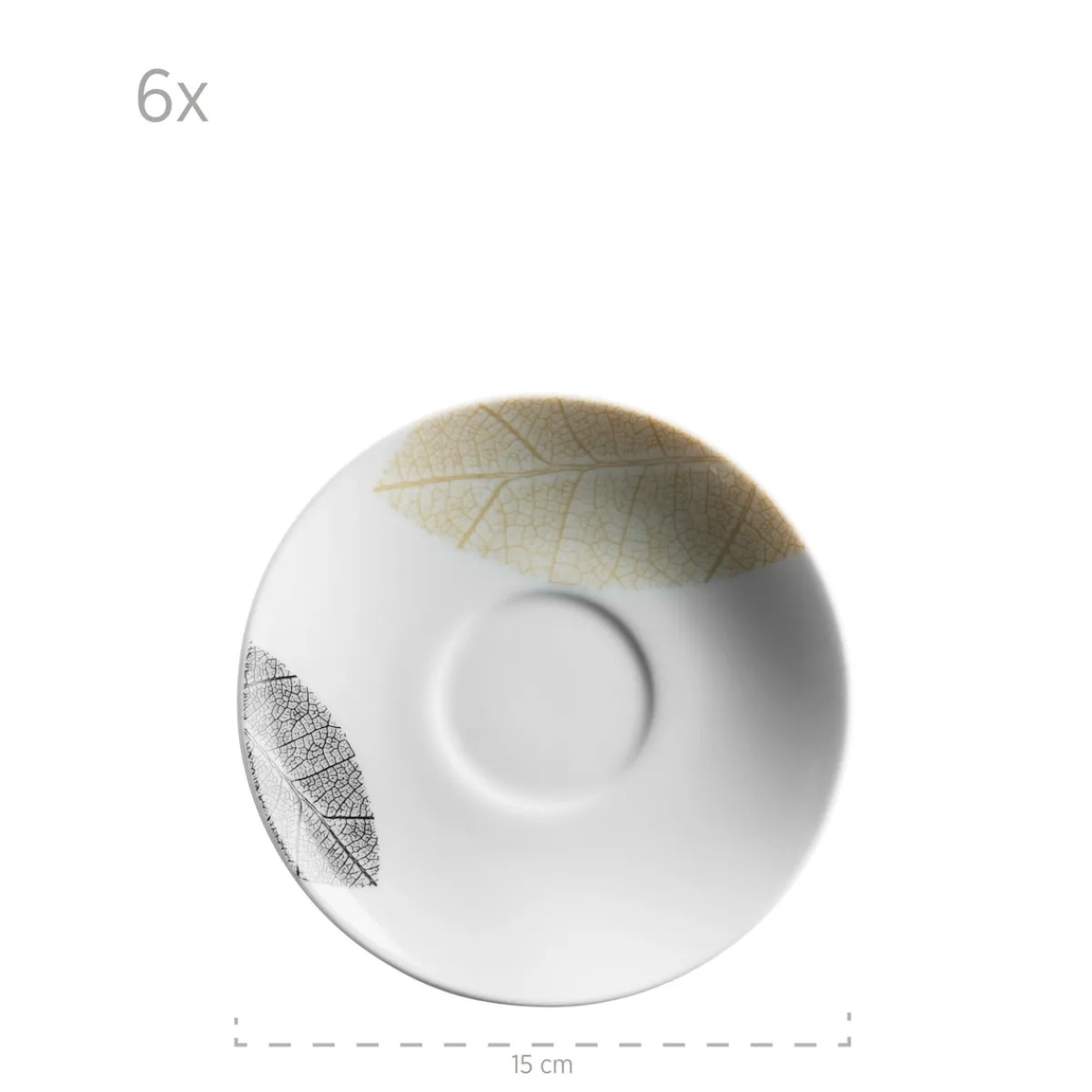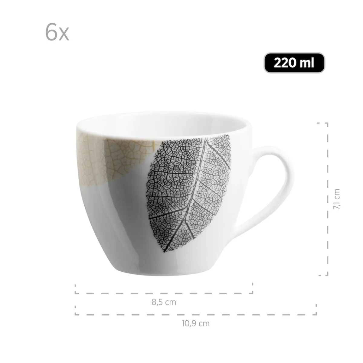 Die Porzellangeschirr-Serie JONAS der österreichischen Traditionsmarke MÄSER präsentiert sich mit einem großflächigen, feingliedrigen Blätterdekor auf modernen randlosen Formen. Verspielt und dennoch elegant, klassisch und zugleich modern – die Schönheit dieser Kollektion ergibt sich aus der Verbindung von traditionellen und topaktuellen Design-Elementen. Dieses Kombiservice für 6 Personen bietet eine Ihnen solide Ausstattung für den Einsatz vom Frühstück über den Nachmittagskaffee bis hin zum dreigängigen Dinner. Alle Teile sind dauerhaft spülmaschinen- und mikrowellengeeignet, und dadurch äußerst pflegeleicht. Die in den Fotos angegebenen Füllmengen beziehen sich aus Gründen der Vergleichbarkeit auf eine Befüllung bis zum oberen Gefäßrand, bei den Abmessungen handelt es sich um Außenmaße.