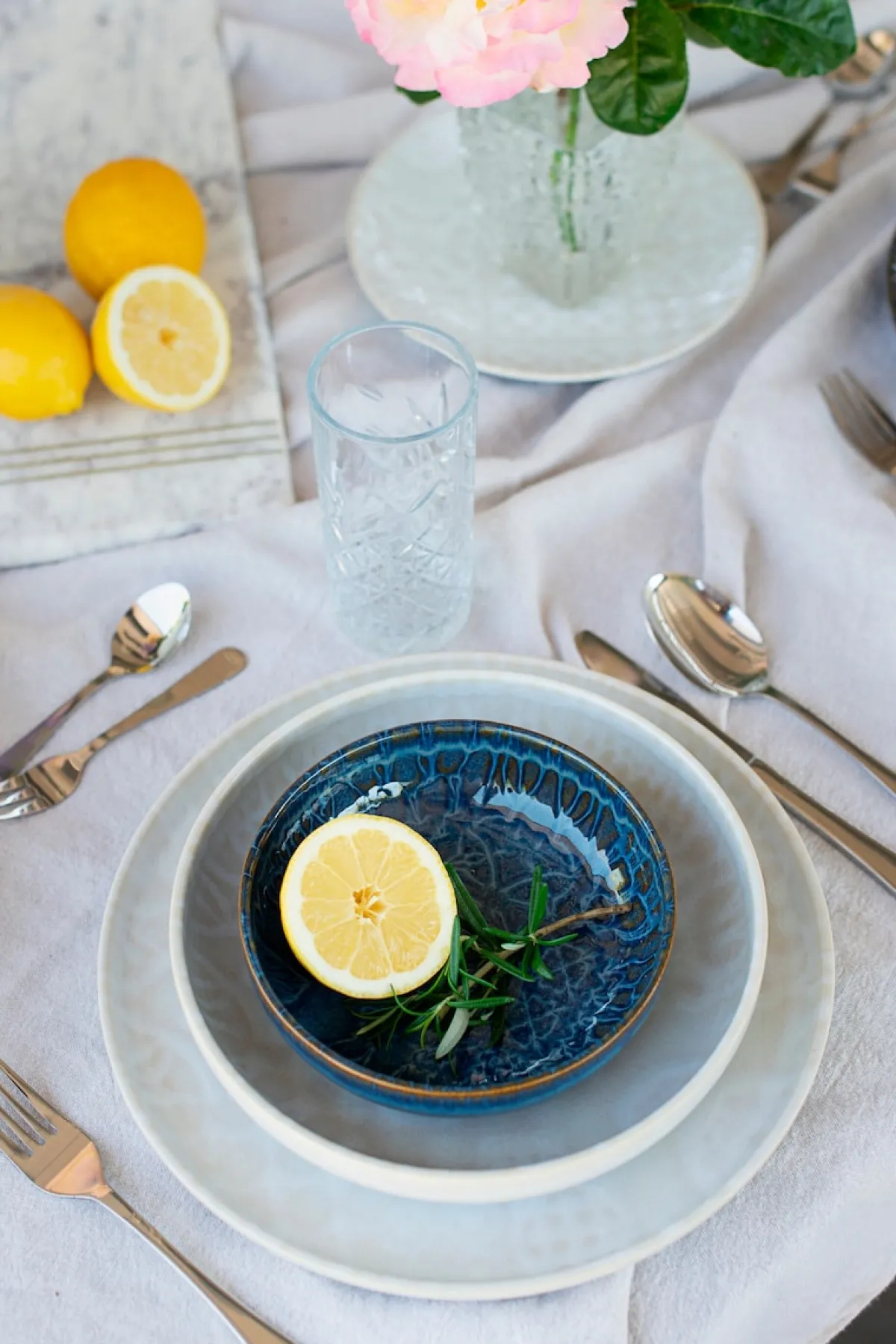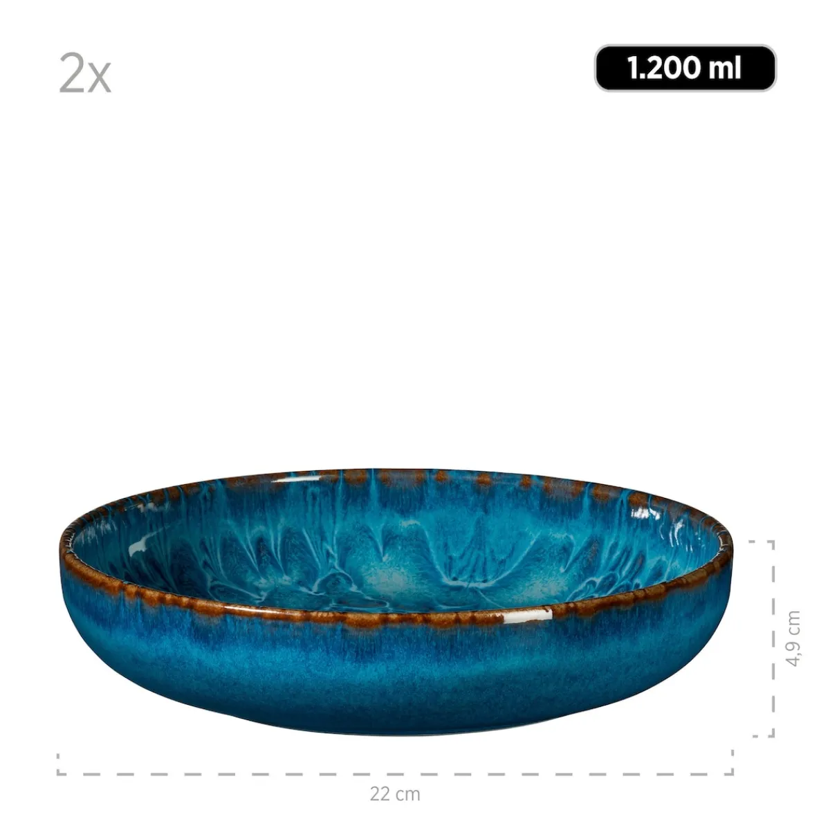 Wenn traditionelle portugiesische Azulejo-Ornamente auf magische Reaktivglasuren treffen, entstehen einzigartige Werke von fesselnder Schönheit. Die unter ressourcenschonenden Bedingungen in Portugal hergestellte Keramikgeschirr-Kollektion „Tiles“ der Traditionsmarke MÄSER transportiert die jahrtausendealte Faszination maurischer Kunst, welche durch eine besondere Glasurtechnik auf jedem Teil von unterschiedlich fließenden Farbverläufen umspielt wird. Besonders gut zur Geltung kommen die inspirierten Dekore dieser Geschirrserie durch die elegant-reduzierte und zugleich großzügige Formgebung der Teller und Schalen. Der Clou: Ganz nach Ihrem Geschmack entscheiden Sie sich zwischen selbstbewussten, dickwandigen Scandi-Formen mit umlaufendem Steg oder grazileren, abgerundeten Coupe-Formen mit geringerem Gewicht und Platzbedarf in Spülmaschine und Küchenschrank. Für welchen Formstil auch immer Sie sich entscheiden: Mit der Tafelgeschirr-Kollektion „Tiles“ hinterlassen Sie nicht nur einen bleibenden Eindruck bei Ihren Gästen, sondern verwandeln auch jede Ihrer Mahlzeiten in einen wahren Augenschmaus. Die Serie „Tiles“ ist aus Steinzeug gefertigt – einer hochwertigen Form der Keramik, die nicht mit dem brüchigeren und poröseren Steingut zu verwechseln ist. In seiner täglichen Handhabung unterscheidet sich hochwertiges Steinzeuggeschirr kaum von Porzellangeschirr: Die gesamte Serie ist mikrowellen- und spülmaschinengeeignet, hitzebeständig und tiefkühlgeeignet und damit absolut alltagstauglich. Dieses Service Set wird in einer vielfach auf Bruchsicherheit getesteten Paketversandverpackung aus ressourcenschonenden Materialien versendet. Bitte beachten Sie: Durch die besondere Glasurtechnik können minimale Unebenheiten in der Glasur auftreten, ebenso tragen Farbabweichungen zwischen verschiedenen Teilen zum typischen, lebendigen Charakter dieser Kollektion bei. Zur besseren objektiven Vergleichbarkeit gehen unsere Füllmengenangaben stets von einer randvollen Befüllung aus.