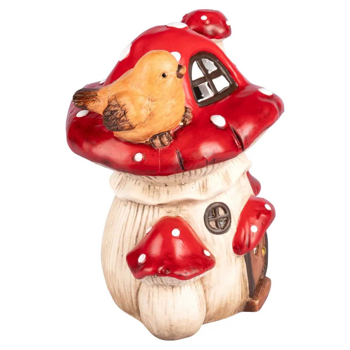 Dieses liebevoll gestaltete Pilzhaus ist nicht nur ein Deko-Element – es ist ein Stück Herbstmagie. In typischer Fliegenpilz-Optik gehalten, strahlt es von innen heraus ein angenehm warmweißes LED-Licht aus und bringt so gemütliche Stimmung in Ihr Zuhause.
