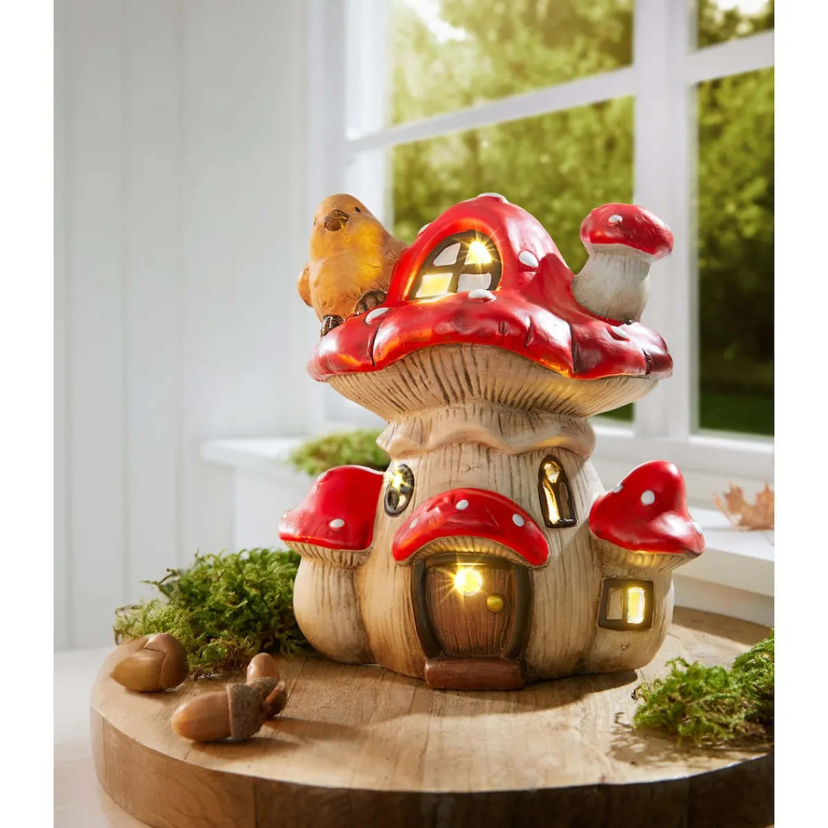 Dank der detailreichen Verarbeitung wirkt es wie aus einem Märchen entsprungen und zieht alle Blicke auf sich. Ob auf der Fensterbank, dem Tisch oder dem Regal – das LED-Pilzhaus sorgt überall für eine herbstlich-bezaubernde Atmosphäre. Ein echter Glücksgriff für Ihre saisonale Dekoration.