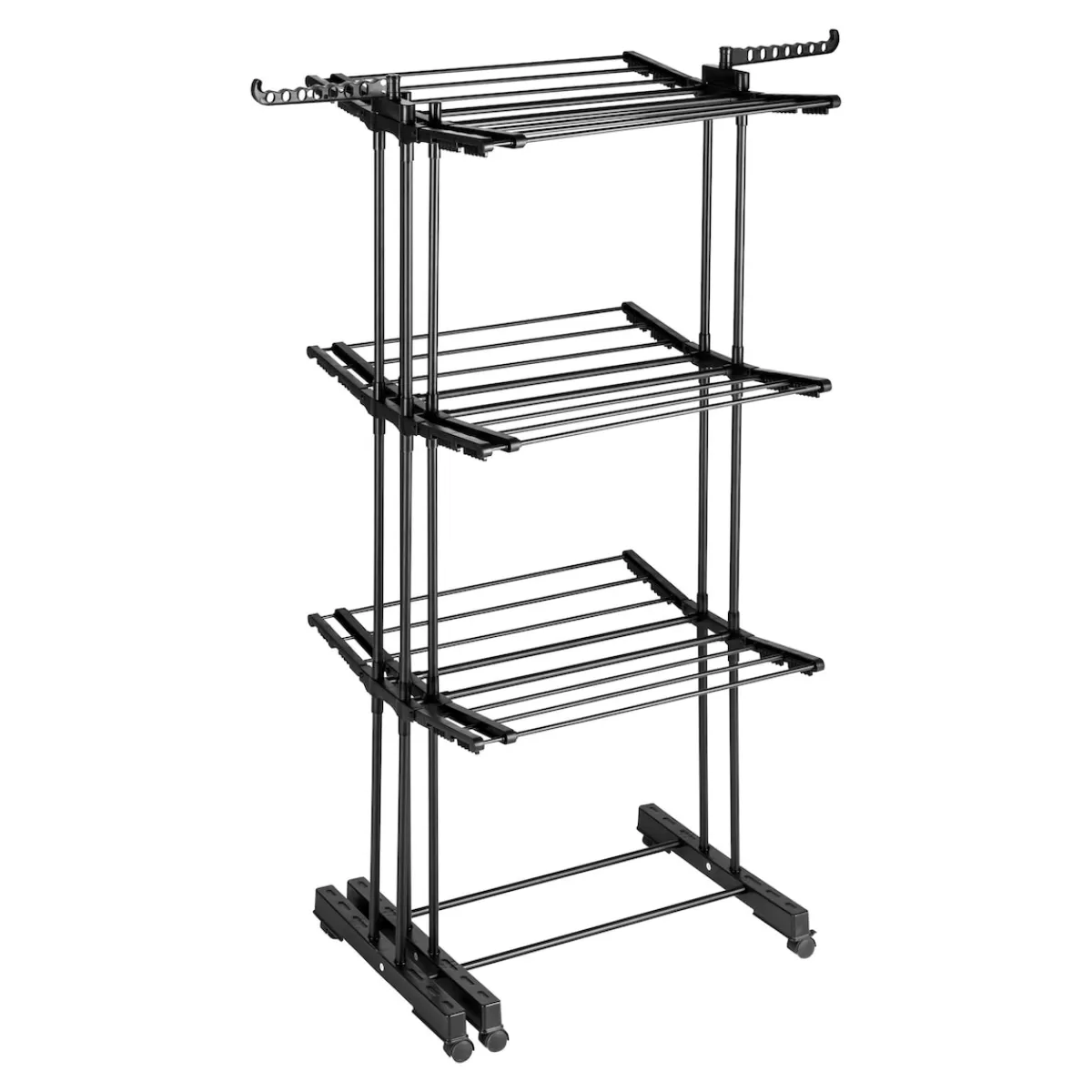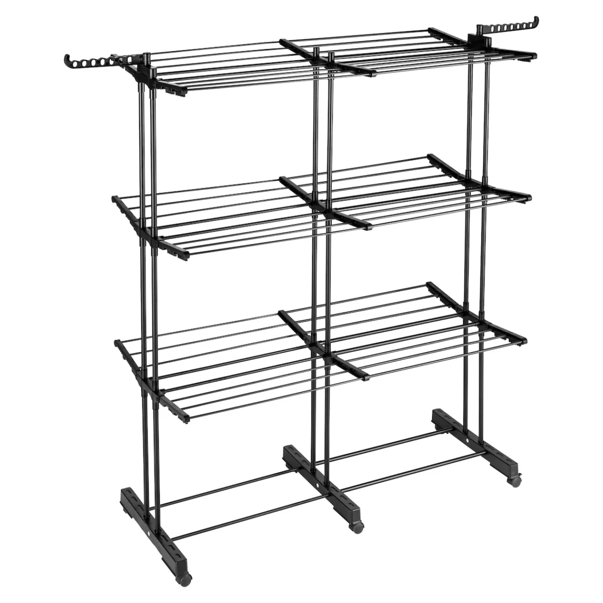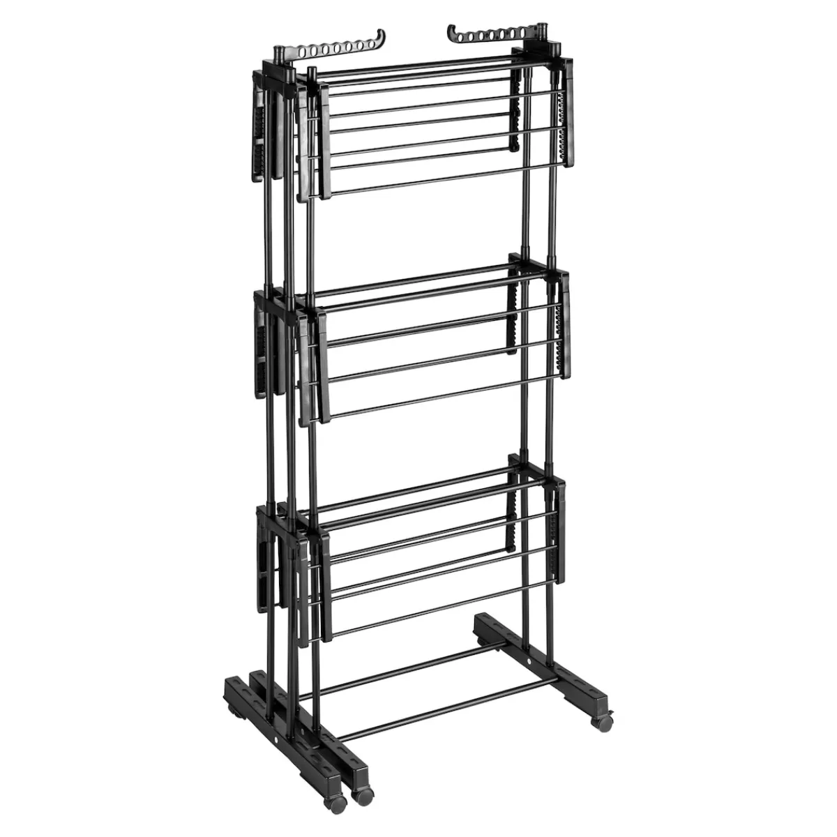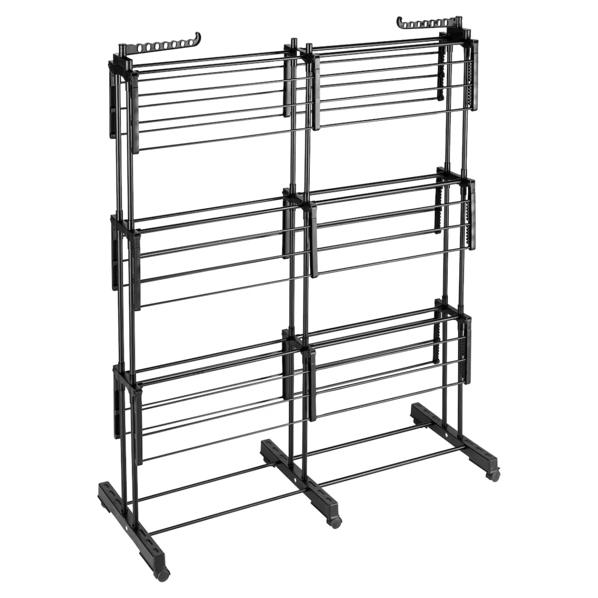 48 Trockenstangen auf 3 Ebenen – so viel Platz bietet kaum ein anderer! Dieser stabile Maxi-Wäscheturm ist bis zu einer Breite von 180 cm ausziehbar und passt sich so immer den Raum- und Wäscheverhältnissen an. Nach Gebrauch im Nu zusammengeklappt und verstaut. Leicht verschiebbar dank Rollen. Trockenfläche: bis zu 40 m.
