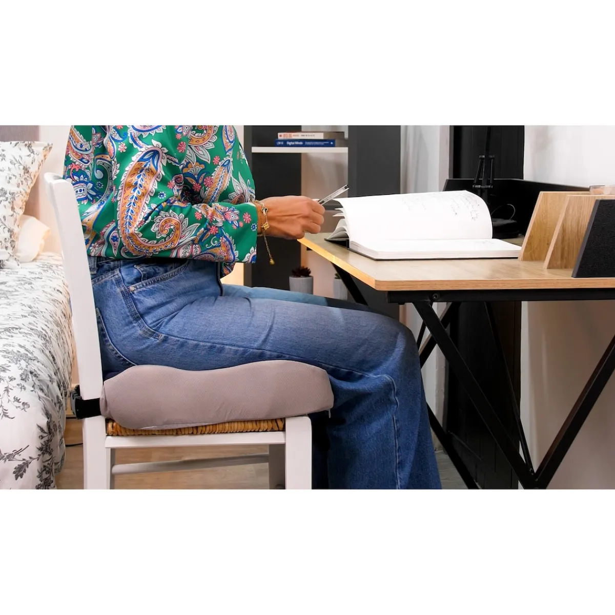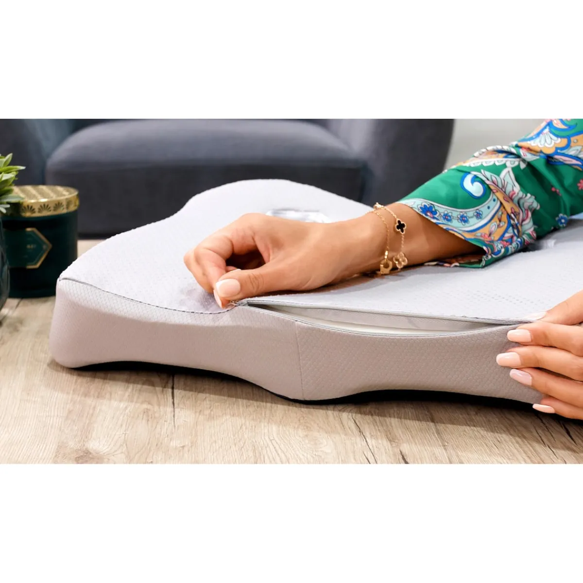 Es wurde speziell für eine effektive Unterstützung der Hüften entwickelt und passt sich perfekt an Ihre Körperform an. Die natürliche W-förmige Kurve des Kissens reduziert den Druck auf das Steißbein und lindert Ischiasschmerzen, gleichzeitig verteilt das Kissen den Druck im Beckenbereich. So können Sie selbst nach Stunden noch bequem und schmerzfrei sitzen.