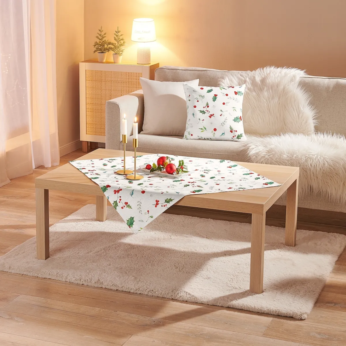 Traditionell sorgt die Stechpalme an Weihnachten für festlichen Glanz. Jetzt sogar als schimmernde Mitteldecke mit Glitzerfäden.