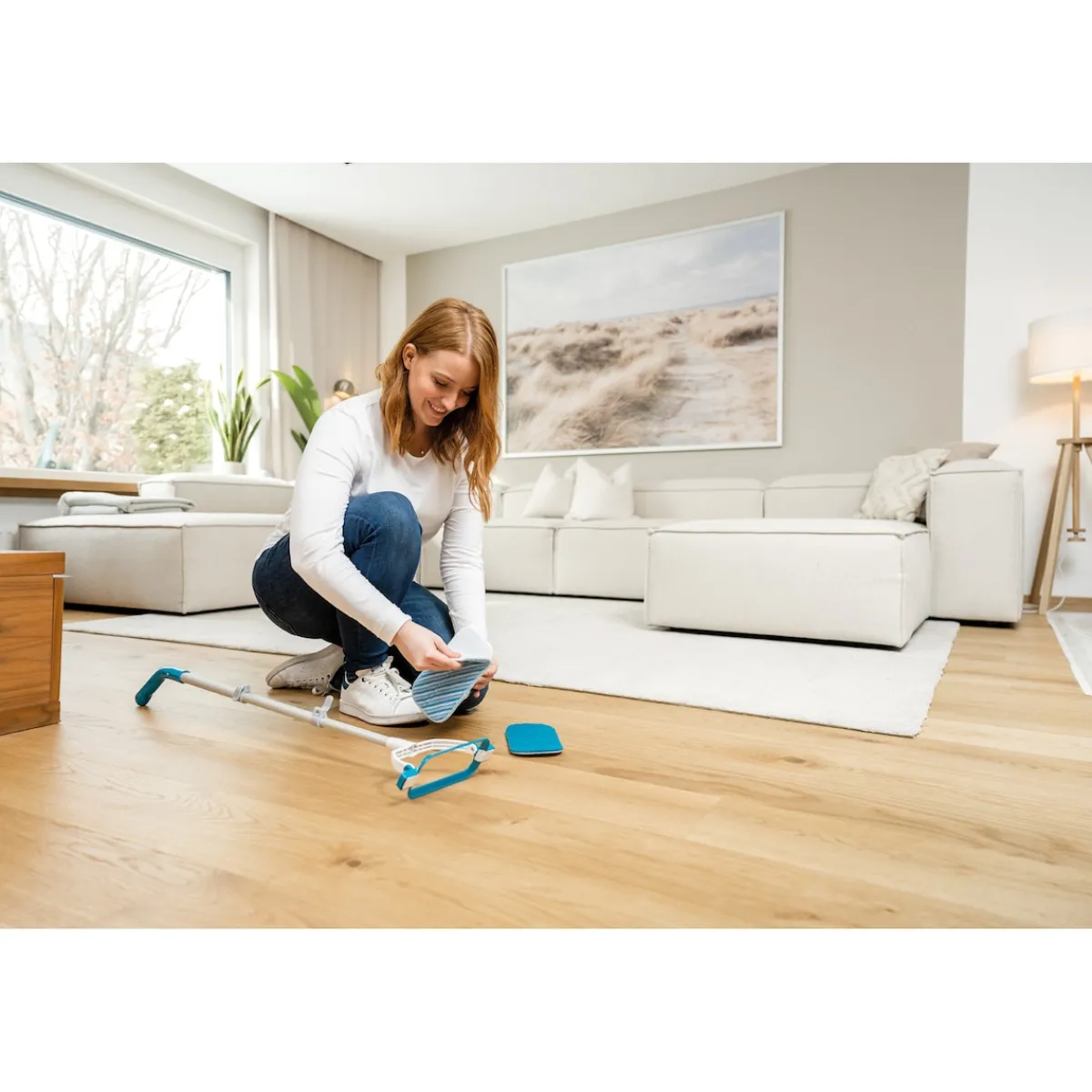 Inhalt: MultiScrubber Reinigungsbürste, Teleskopstange, 1 Nylonpad, 1 Mikrofaserpad, Ladegerät.