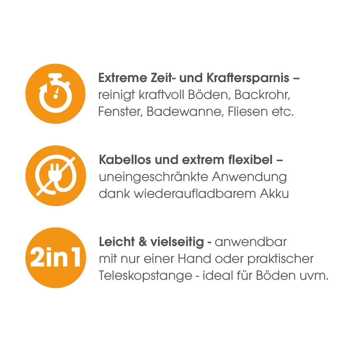 - inkl. Teleskopstange Mikrofaser-Pad, Nylon-Pad, Ladegerät