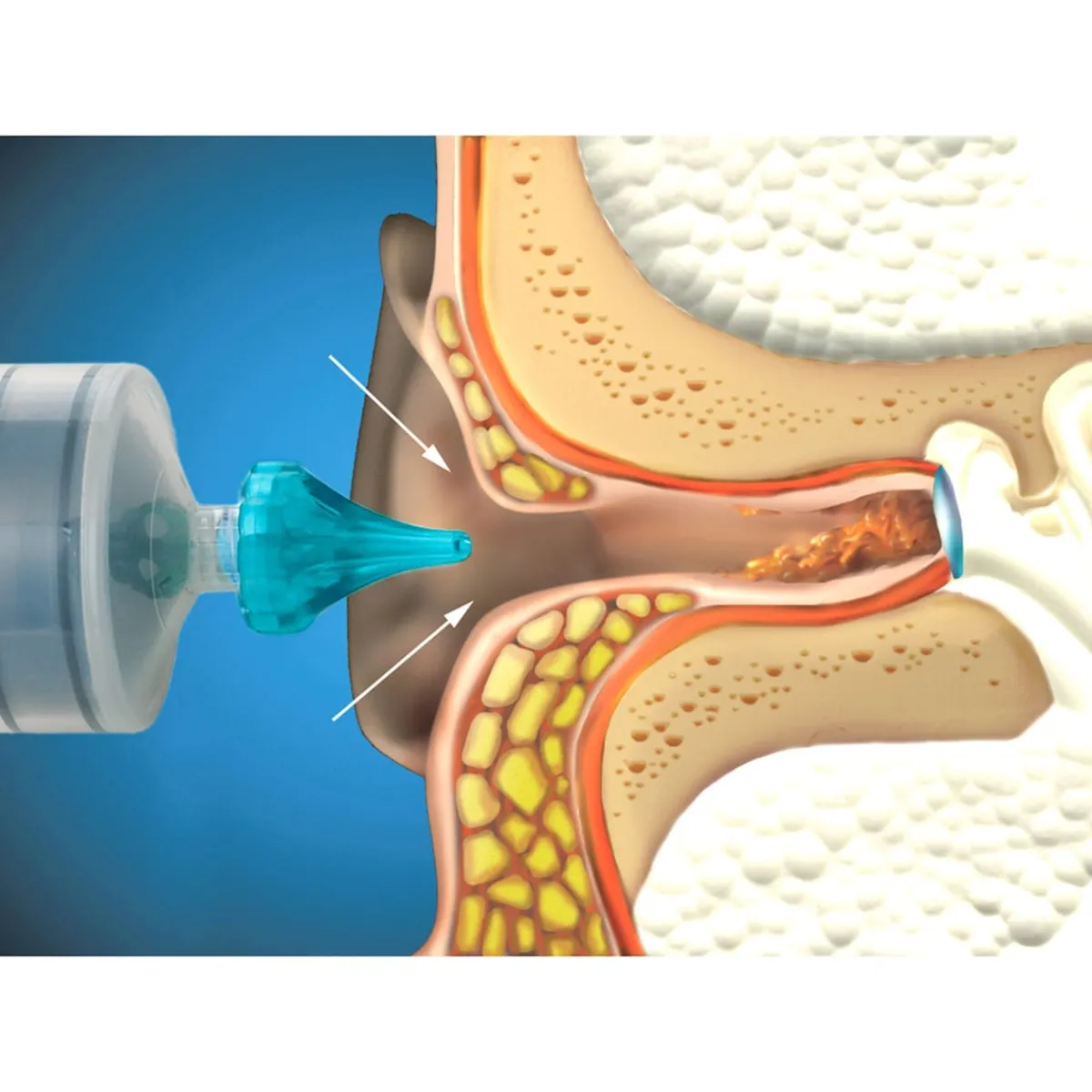 Der weiche Sprühstrahl trifft auf die Ohrkanalwände und nicht direkt auf das Trommelfell. Gefahrlos: Die weiche, kegelförmige Spitze kann nicht zu tief in den Gehörgang eingeführt werden. Sie spritzen warmes Wasser oder Ohren tropfen ins Ohr, überflüssiges Ohrenwachs, Ablagerungen und Flüssigkeit werden einfach ausgespült.