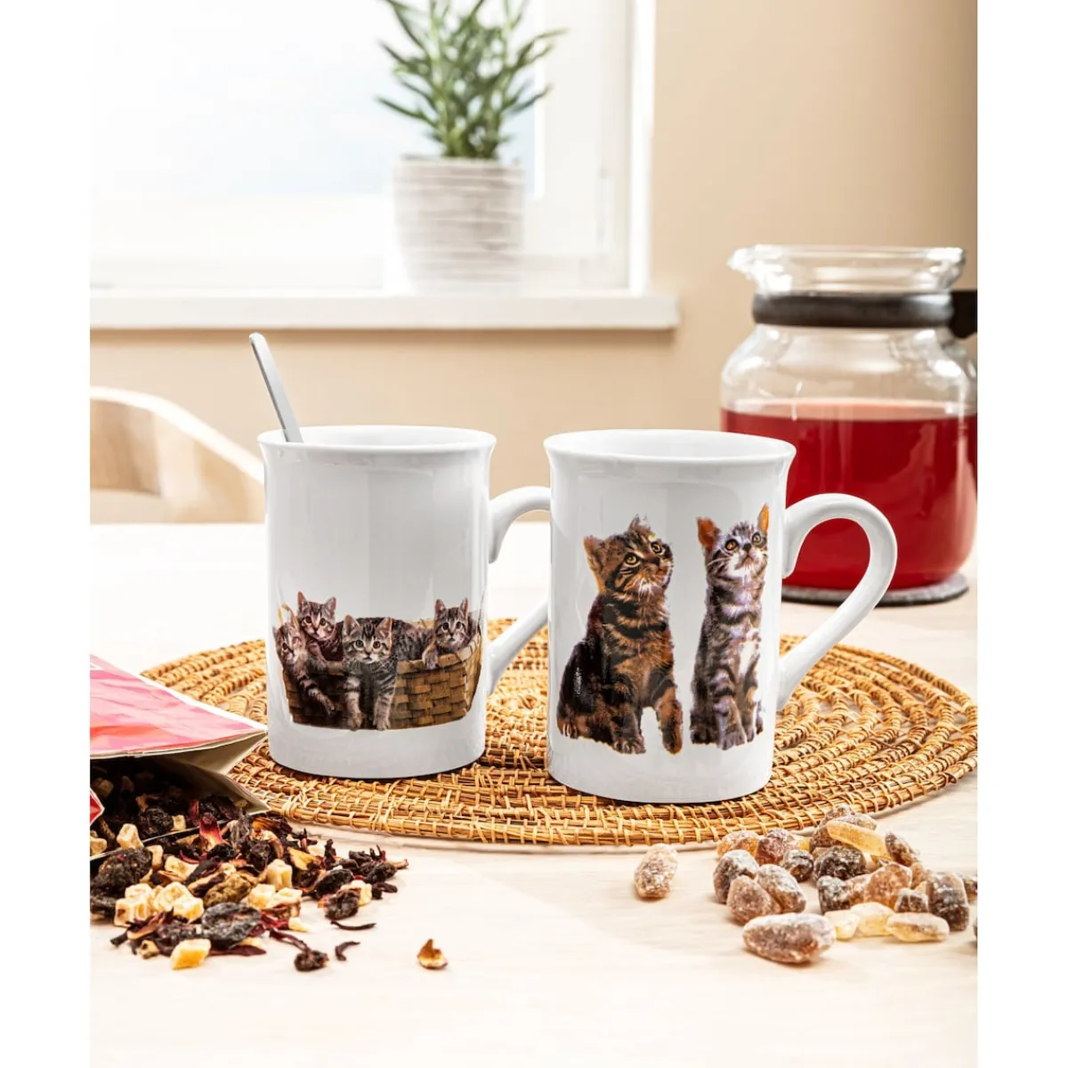 Katzenliebhaber aufgepasst: Die kleinen, niedlichen Kätzchen auf den beiden Tassen bringen Sie garantiert schon morgens beim ersten Kaffee oder Tee zum Lächeln. So starten Sie gut gelaunt in den Tag! Auch eine tolle Geschenkidee.