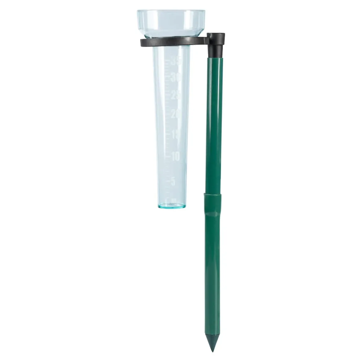 Die Antwort auf diese Frage können Sie von nun an millimetergenau an der Skala Ihres Regenmessers ablesen. So sind Sie immer bestens informiert, ob Sie für Ihre Pflanzen im Freien zusätzlich zum Gießwasser greifen müssen oder nicht. Einfach mit dem mitgelieferten Holzstiel in den Boden stecken.