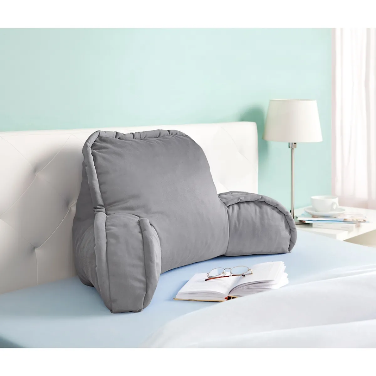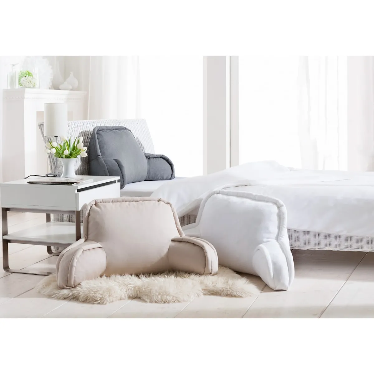 Gemütlich im Bett lesen? Dieses große, kuschelige Rückenkissen bietet Ihnen optimalen Halt und entlastet Ihren Rücken – besonders die Lendenwirbel. Armlehnen sorgen für zusätzlichen Komfort. Ideal auch für Sofa und Sessel!