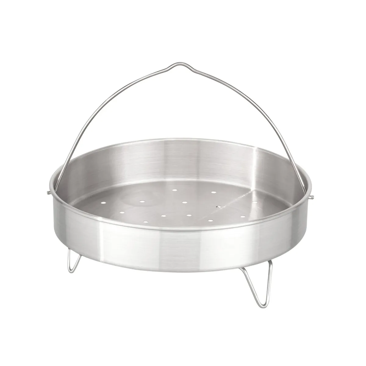 Inhalt: 1x Schnellkochtopf, 1x Schnellkochpfanne, 1x Schnellkochdeckel, 1x Dünsteinsatz, 1x Standfuß