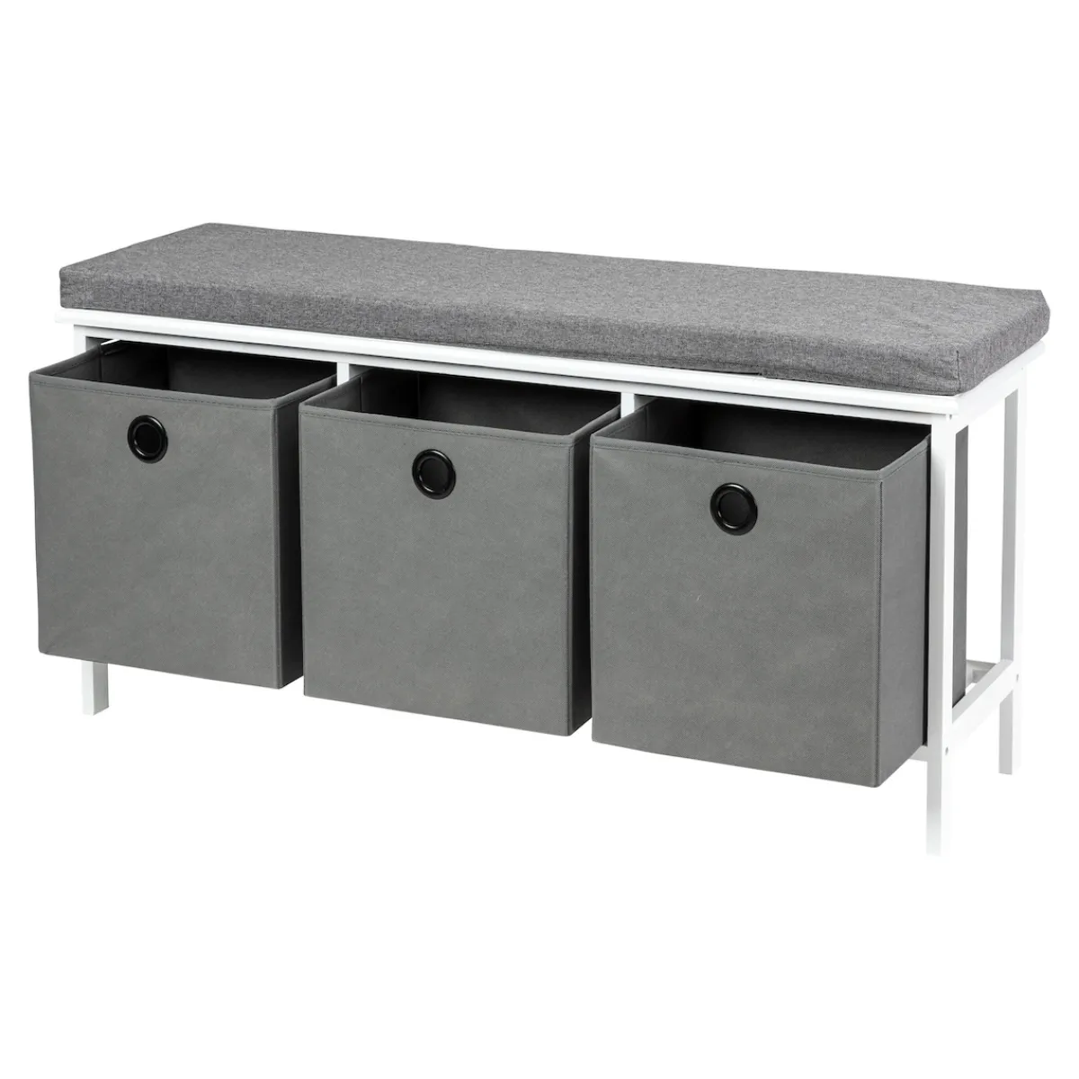 Das ist viel mehr als eine Sitzbank: 3 Fächer mit geräumigen Stoffkisten unter der Sitzfläche bieten Stauraum und bringen Ordnung in Ihr Heim. Mit durchgehender Kissenauflage.