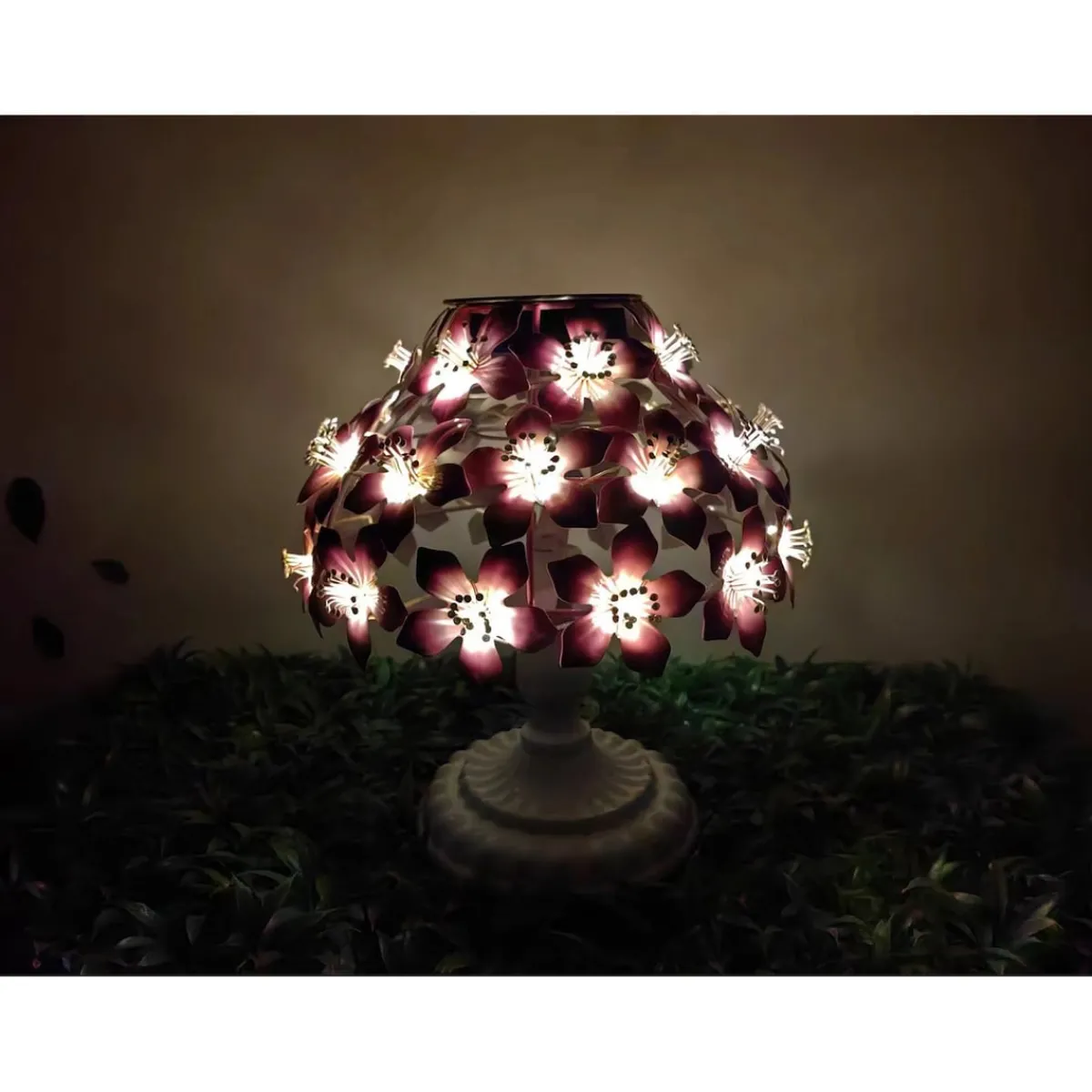 Die Solar-LED-Tischleuchte im Hibiskuslook verbindet dekorativen Charme mit praktischer Technik. Tagsüber fangen die metallischen Blüten das Sonnenlicht ein und setzen farbige Akzente – bei Dunkelheit schalten sich die LEDs automatisch ein und tauchen Ihre Umgebung in sanftes Licht. Dank Solarbetrieb benötigen Sie weder Steckdose noch Batterien. Durch die kompakte Größe lässt sich die Leuchte auch wunderbar im Innenbereich platzieren. Ein liebevoller Dauerblüher, ganz ohne Gießkanne – ideal auch als Geschenk.