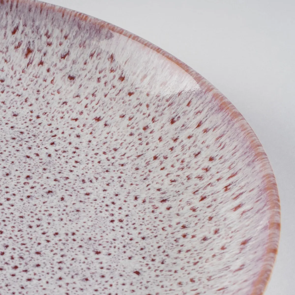 Sanfte Rosa-Violetttöne und zartes, gebrochenes Weiß harmonieren perfekt mit der glänzenden, effektvollen Reaktivglasur. Das Zusammenfließen der Farben erzeugt ein wunderbar unverfälschtes, einzigartiges Muster – genau wie in der Natur. Jedes Teil ist ein von Hand bearbeitetes Unikat aus europäischer Produktion. Spüre die Pracht einer blühenden Bergwiese und hol dir mit Gipfelstück ein Stück Alpenschönheit nachhause auf deinen Tisch.