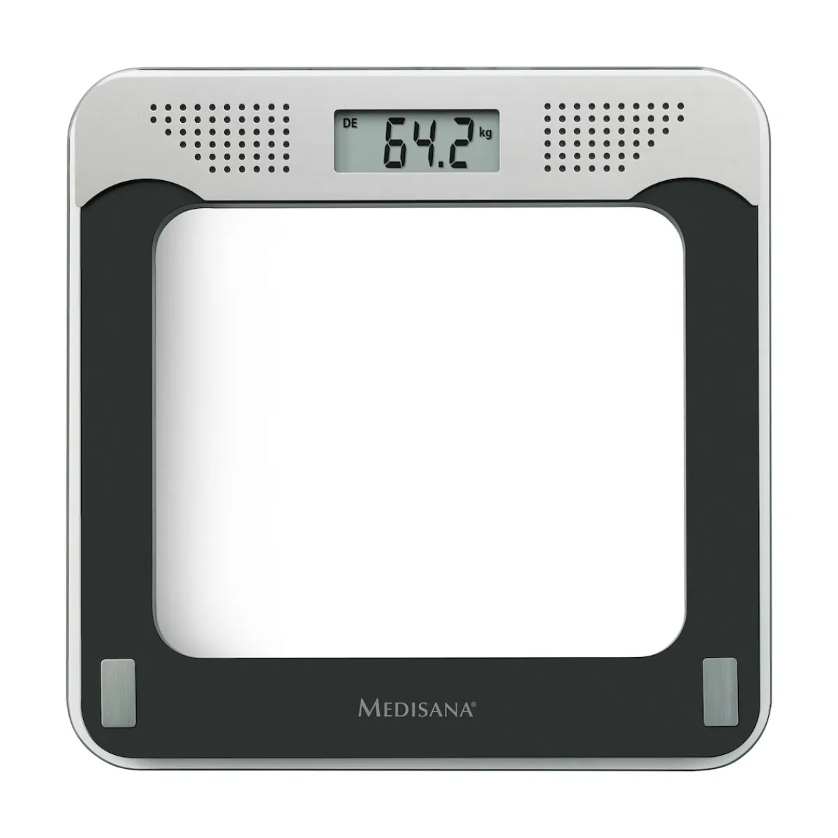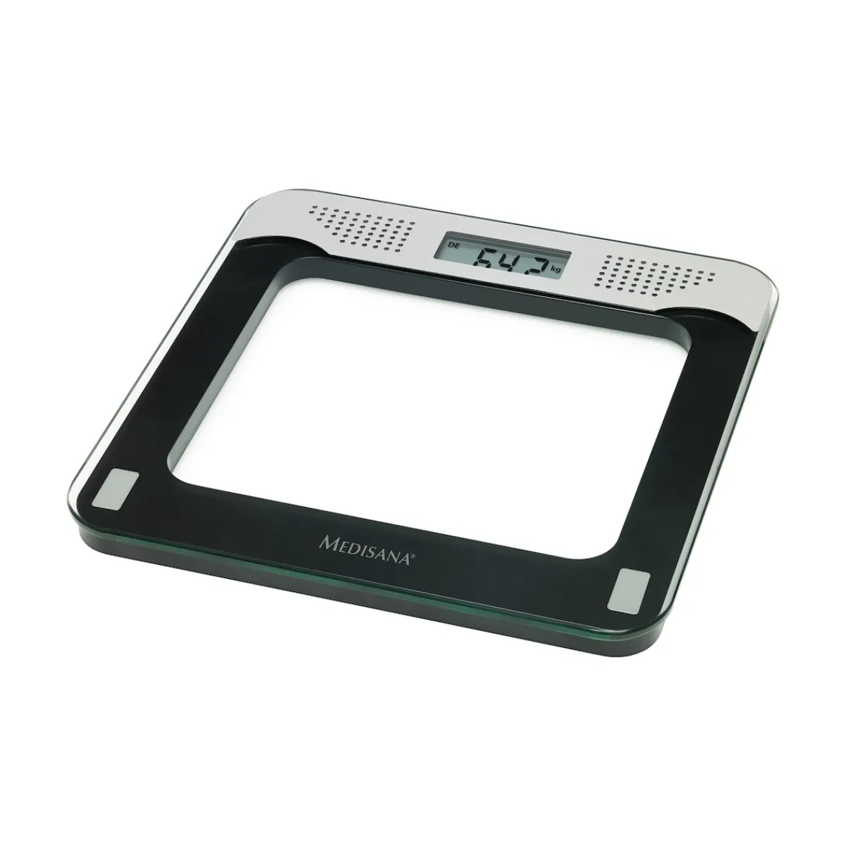 Automatisch an – automatisch aus. Sobald Sie darauf treten, geht diese Waage an. Und wenn Sie wieder heruntersteigen, schaltet sie wieder ab. Mit hochpräzisen DMS-Sensoren für ganz genaue Messergebnisse. 100 g-Einteilung.