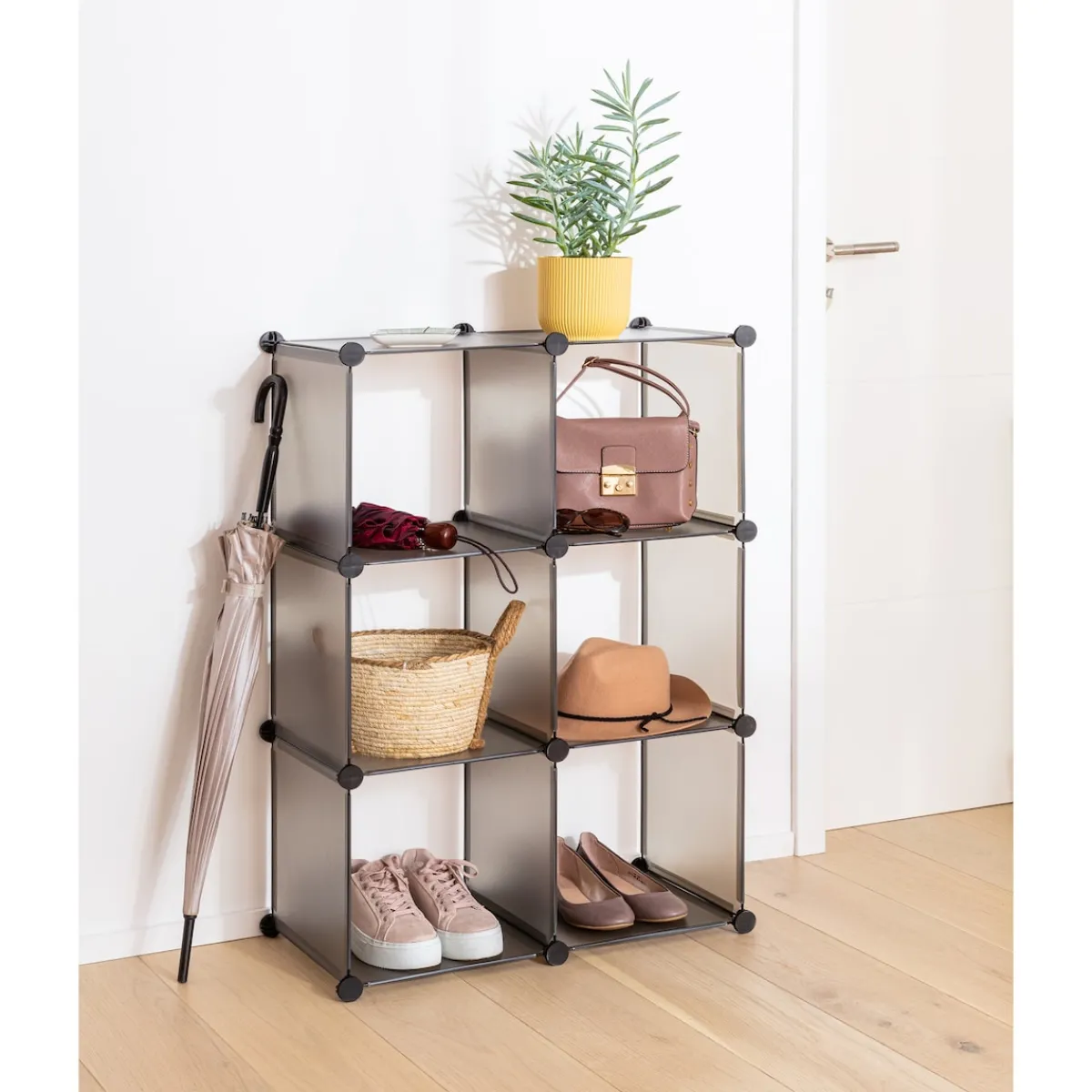 Der stabile Allrounder bietet 6 gleich große Fächer, die sich beliebig und optimal an persönliche Ansprüche und Wohnsituationen anpassen lassen, z.B. treppenförmig, über- oder nebeneinander – ganz nach Ihren Wünschen. Das Regal lässt sich beliebig erweitern und bei Bedarf mühelos umstecken, ganz ohne Bohren.