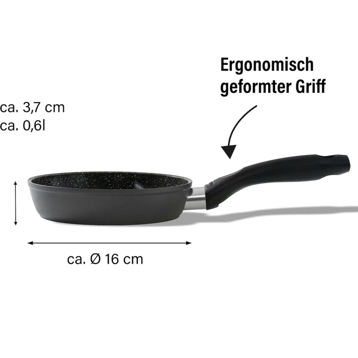 Die geniale STONELINE Beschichtung nun auch in Keramik-Ausführung!Gesundes, vitaminschonendes Kochen mit wenig FettDiese 16 cm Bratpfanne ist ein Muss in jeder Küche. Sie ist für kleinere Mengen optimal geeignet.Dank der extrem harten, langlebigen STONELINE CERAMIC Beschichtung mit Lotus Abperl-Effekt werden Sie zukünftig noch mehr Freude beim Zubereiten Ihrer Speisen haben! Hierbei spielt es keine Rolle, ob Sie auf Glaskeramik, Induktion, Elektro oder Gas kochen.1 Bratpfanne, ø ca. 16 cm, Höhe: ca. 3,7 cm, ca. 0,6 l; Induktionsboden ø ca. 13 cmDie wichtigsten Vorteile des STONELINE CERAMIC Kochgeschirrs auf einen Blick:Kratzfeste STONELINE- KeramikbeschichtungOptimales Bratergebnis und kross gebratenes FleischBester GeschmackVitaminschonend kochen und braten mit wenig Fett und ÖlKein Anbrennen und kein AnklebenSuper leicht zu reinigenFür alle Herdarten geeignet, auch InduktionExtra starker, verzugsfreier BodenBeschichtung hitzebeständig bis 450 °CZum Flambieren geeignetBodenstärke: 2,8 mmBackofengeeignet bis 180 °CMaterial: AluminiumPFAS FreiReinigungs- und Pflegetipps:Vor dem ersten Gebrauch empfehlen wir, Ihr Koch- oder Backgeschirr mit etwas Wasser und einem milden Spülmittel gründlich auszuwaschen.Verteilen Sie anschließend mit einem Papierküchentuch einige Tropfen Speiseöl auf der Beschichtung.Dank dem Easy-Clean-Effekt wird die Reinigung per Hand empfohlen. Einfach mit heißem Wasser, Handspülmittel und einem weichen Schwamm auswischen.