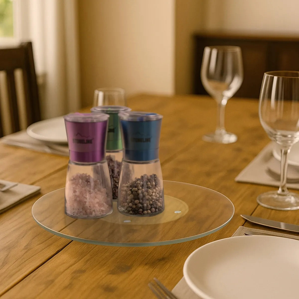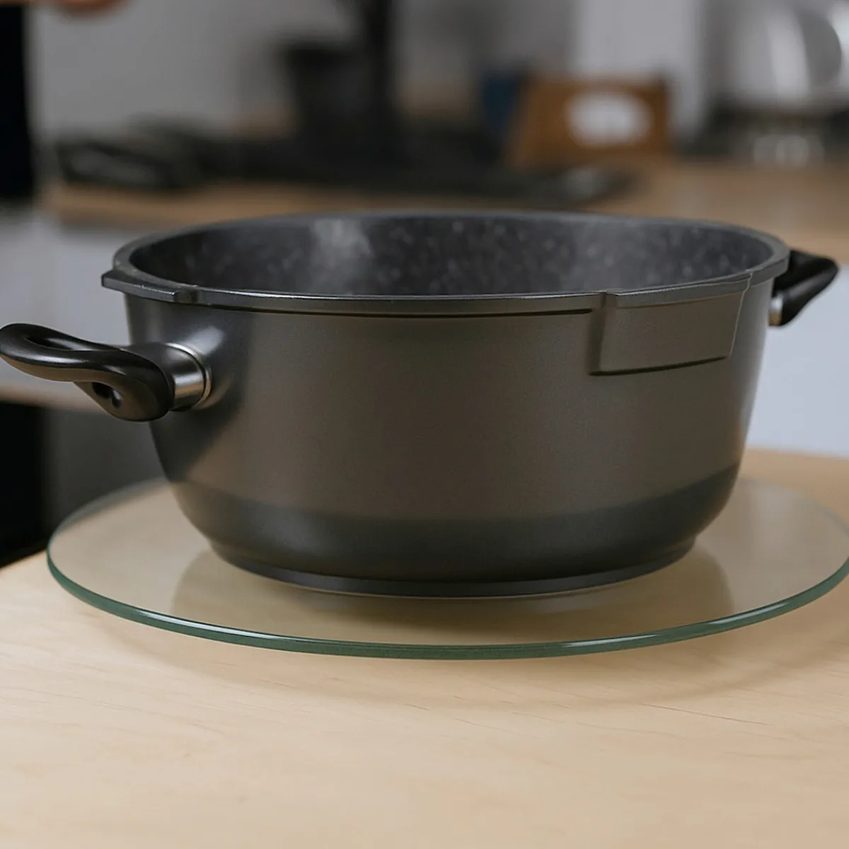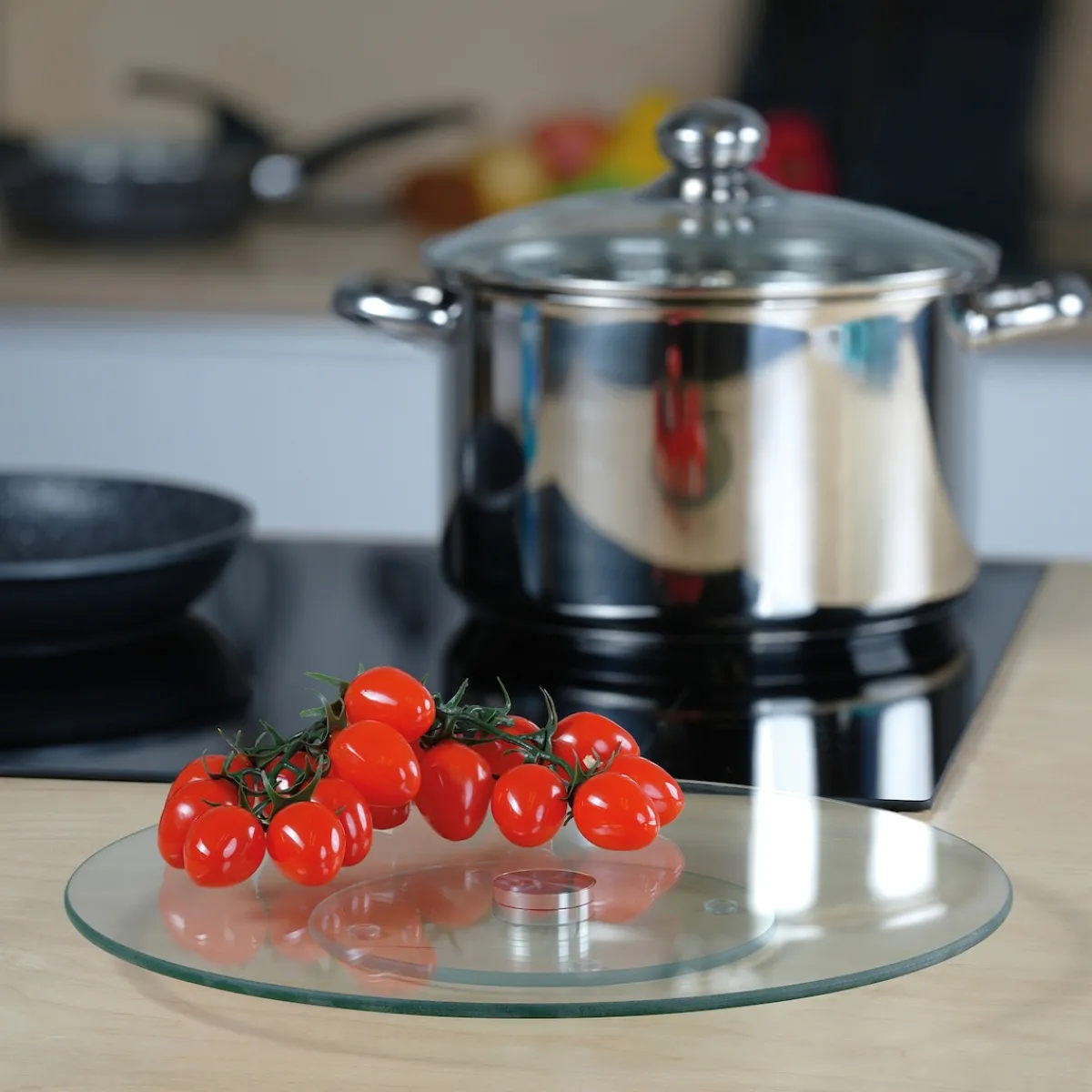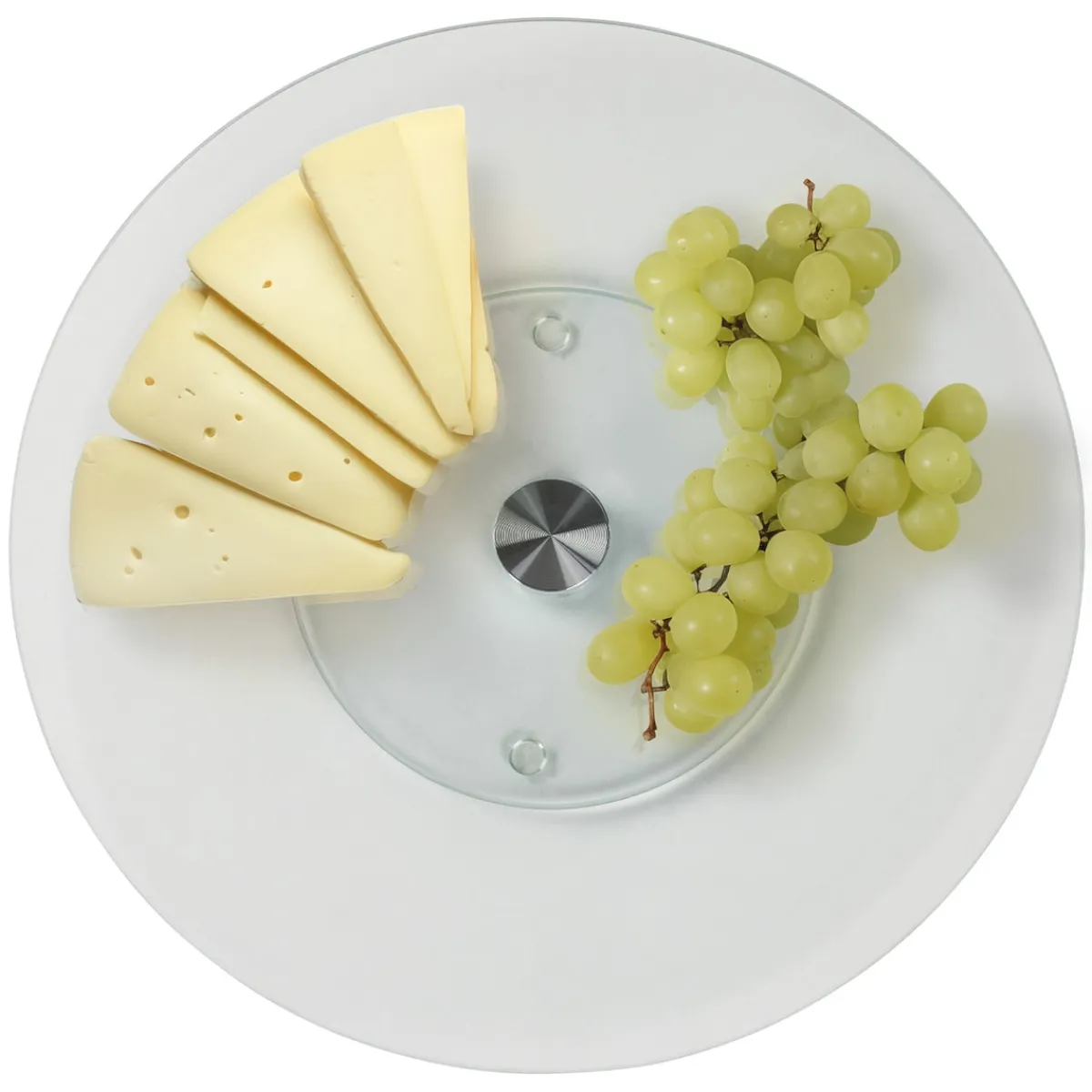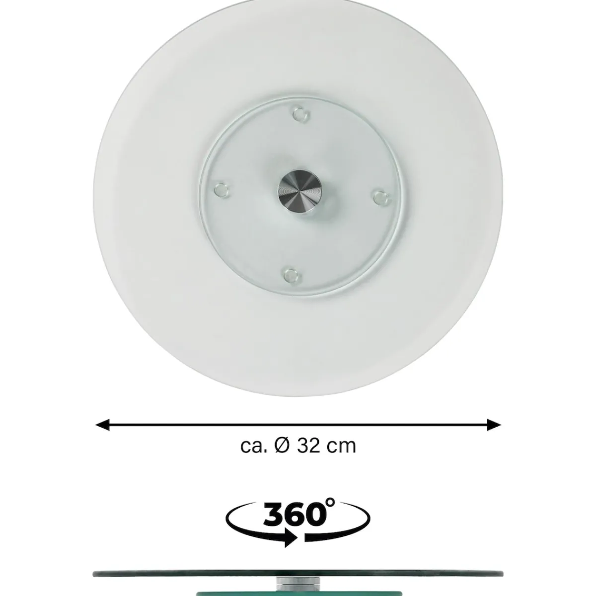 STONELINE – Das Original! Unsere drehbare Servierplatte aus Glas ist mit einem Durchmesser von 32 cm ideal für Familienessen, Partys und besondere Anlässe. Durch das zeitlose Design passt sie zu jedem Küchen- und Esszimmer-Ambiente. Der Drehteller ist nicht nur zuhause ein tolles Accessoire. Auch im Büro oder bei Veranstaltungen können darauf Vorspeisen, Hauptgerichte oder Desserts stilvoll und praktisch präsentiert werden. Die leichtgängige 360-Grad-Drehfunktion ermöglicht, alle darauf platzierten Speisen bequem zu entnehmen. Ob für Buffets, Käseplatten, Sushi oder Desserts – alles ist sofort griffbereit. Sie können den Servierteller auch als Topfuntersetzer für heiße Pfannen, Töpfe oder Auflaufformen benutzen. Gefertigt aus robustem, bruchsicherem Glas, ist diese Servierplatte nicht nur optisch ansprechend, sondern auch langlebig und widerstandsfähig. Der rutschhemmende Standfuß sorgt für einen sicheren Halt und verhindert Kratzer auf empfindlichen Oberflächen. Die glatte Oberfläche macht die Glasplatte sehr hygienisch. Sie ist geruchsneutral und kann einfach mit einem feuchten Tuch abgewischt werden. 1 Servierplatte aus Glas, ø ca. 32 cm, Stärke Servierplatte: ca. 2,5 mm, Gesamthöhe: ca. 2,6 cmDesign: Transparent Die wichtigsten Vorteile auf einen Blick: Viele Verwendungsmöglichkeiten: Schneiden, vorbereiten, anrichten, servieren Auch als Topfuntersetzer geeignet Zeitloses Design Mit rutschhemmendem Standfuß Hygienisch und geruchsneutral Leicht zu reinigen dank glatter Oberfläche Material Servierplatte: bruchstabilisiertes Glas