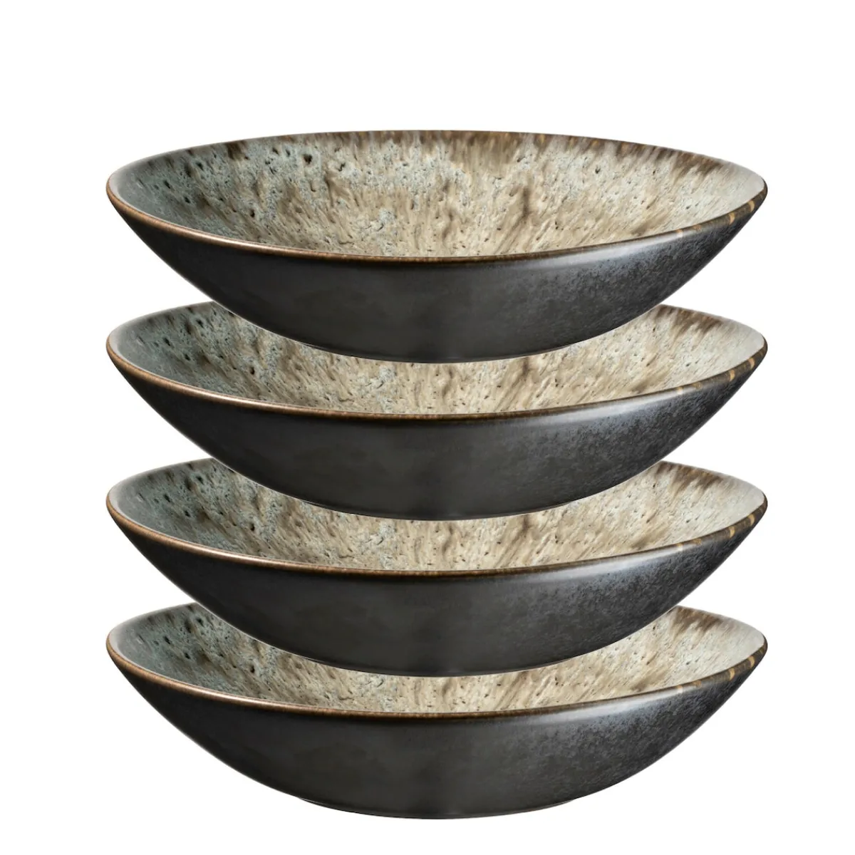 Mit einem Durchmesser von 23 cm bieten die Suppenteller ausreichend Platz für Suppen, Eintöpfe, Pasta oder Bowls. Die spezielle Reaktivglasur sorgt für faszinierende Farbverläufe und macht jeden Teller zum Unikat – ein spannendes Wechselspiel aus matten und glänzenden Oberflächen verleiht dem Set seine individuelle Note.