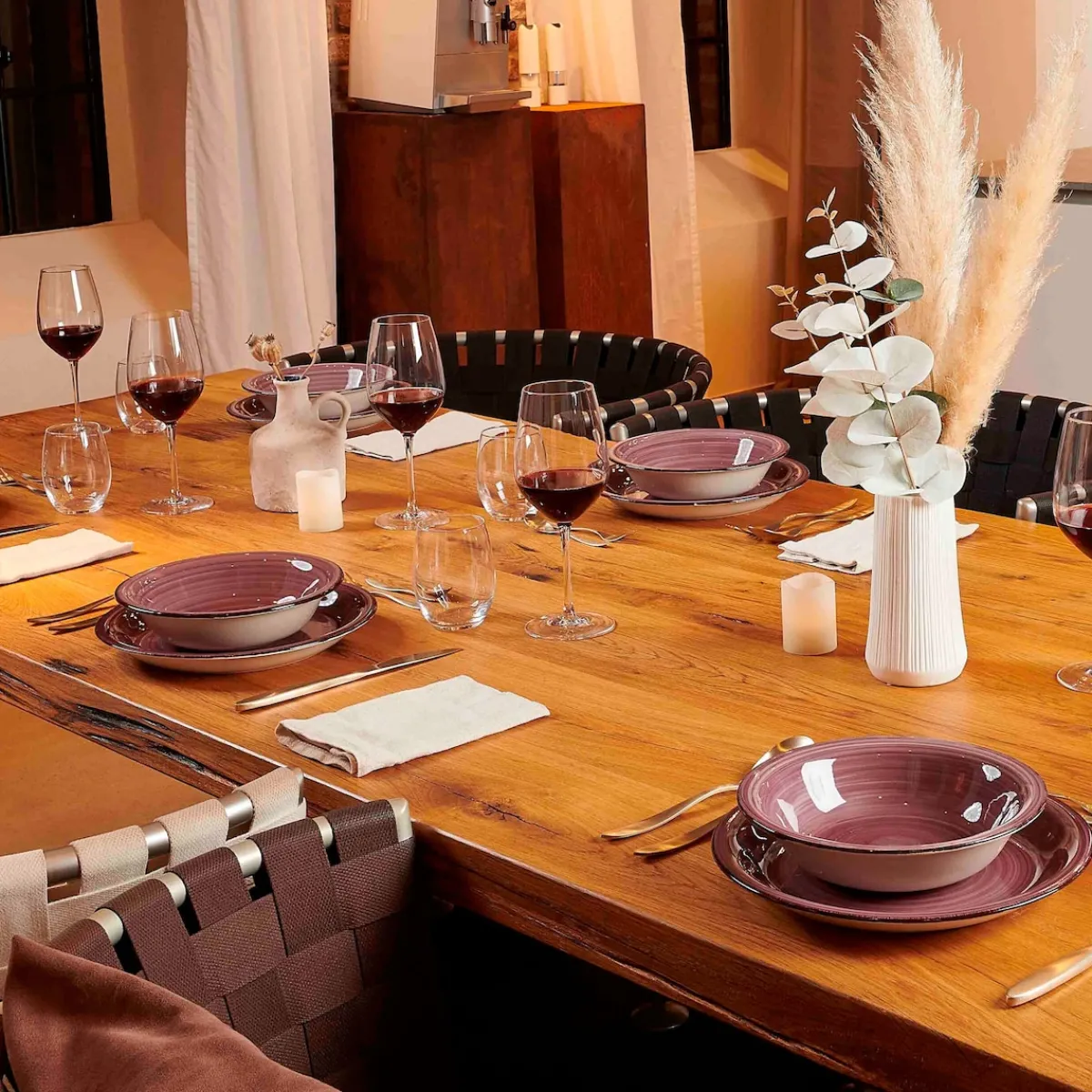 Langsam und mit Genuss statt schnell und in Hektik: Immer häufiger wird Wert auf Entschleunigung gelegt – vor allem beim Essen. Das passende Ambiente für ein gemeinschaftliches Erlebnis im Haus, im Garten, auf der Terrasse oder Ihrem Balkon schaffen Sie ganz leicht mit der rustikal anmutenden, handbemalten Kollektion LUMACA. Dieses Service enthält: 6x Speiseteller mit 27 cm Durchmesser 6x tiefe Teller (Suppenteller) mit 21 cm Durchmesser Die gesamte Serie LUMACA ist aus dickwandigem Steingut gefertigt. Mit den kreisförmig-verspielten Linienführungen kombiniert dieses Geschirr auf harmonische Weise klassische runde Formen mit einem farbenfrohen Vintage Look. LUMACA wird auch Ihren Esstisch zu etwas ganz Besonderem machen! Alle Service der Serie LUMACA sind dauerhaft spülmaschinen- und mikrowellengeeignet, und dadurch äußerst pflegeleicht. Dieses Tafelset wird in einer speziell für dieses Set entwickelten, vielfach getesteten Transportverpackung aus umweltschonenden Materialien versendet.