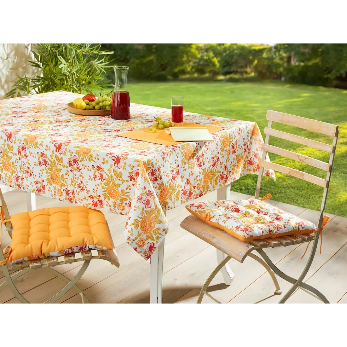 Für einen Gartentisch voller Liebe und Stil: Diese über und über mit Rosen verzierte Tischdecke schafft die perfekte Grundlage für guten Appetit und gesellige Stunden in bester Gesellschaft. Mit den trendig-leuchtenden Farben tischen Sie Sommerfrische auf.