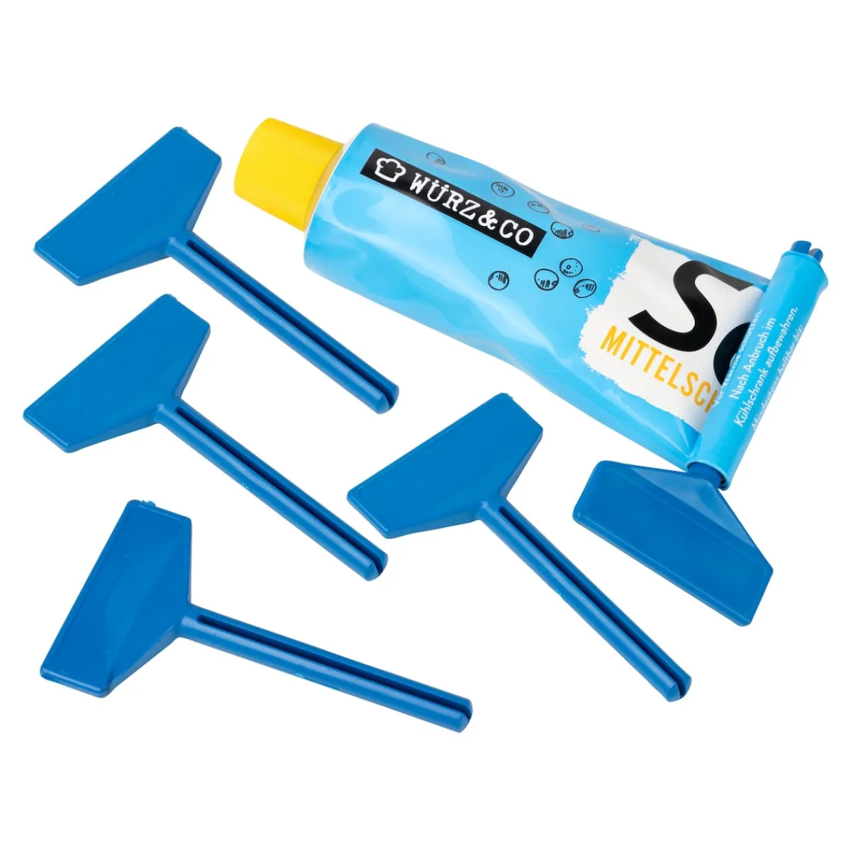 Dieser kleine Pfiffikus entleert auf simple Art alle Tuben, die sich in Küche und Bad, im Büro und beim Basteln ansammeln: Einfach Tubenfalz einfädeln und aufrollen.