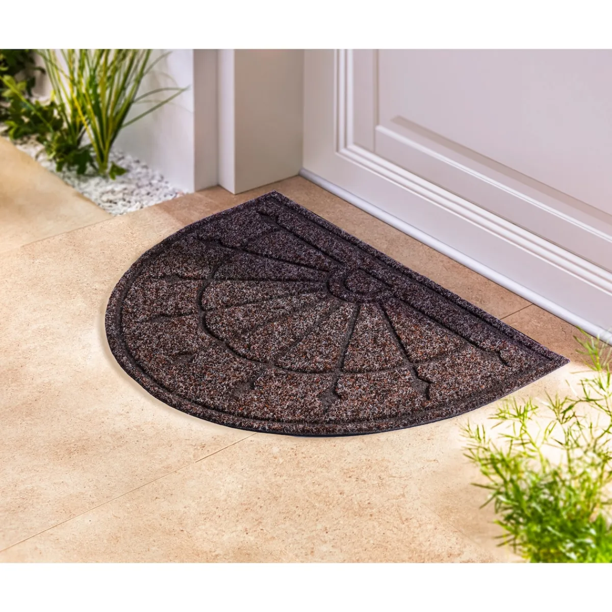 Die strapazierfähige Türmatte macht Ihren Eingang an Haus- oder Balkontür zu einer „halbrunden“ Sache. Dank ihrer robusten Machart nimmt sie Schmutz und Feuchtigkeit zuverlässig auf und sorgt dafür, dass Ihr Zuhause stets sauber und einladend bleibt.