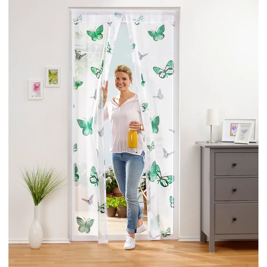 Welch ein Schmuckstück für Ihre Terrassentür! Und so praktisch! Denn dieser Vorhang schließt sich dank eingefasster Magnete nach dem Durchgehen automatisch. Das ist besonders hilfreich, wenn Sie mal keine Hände frei haben. Auch Kinder und Hunde haben es leicht. Insekten jedoch lässt der Vorhang draußen. Er ist außerdem blickdicht, sorgt aber mit seiner leichten Gewebestruktur für eine ausreichende Belüftung. Mit Klebepads aus Klett zur einfachen Montage.