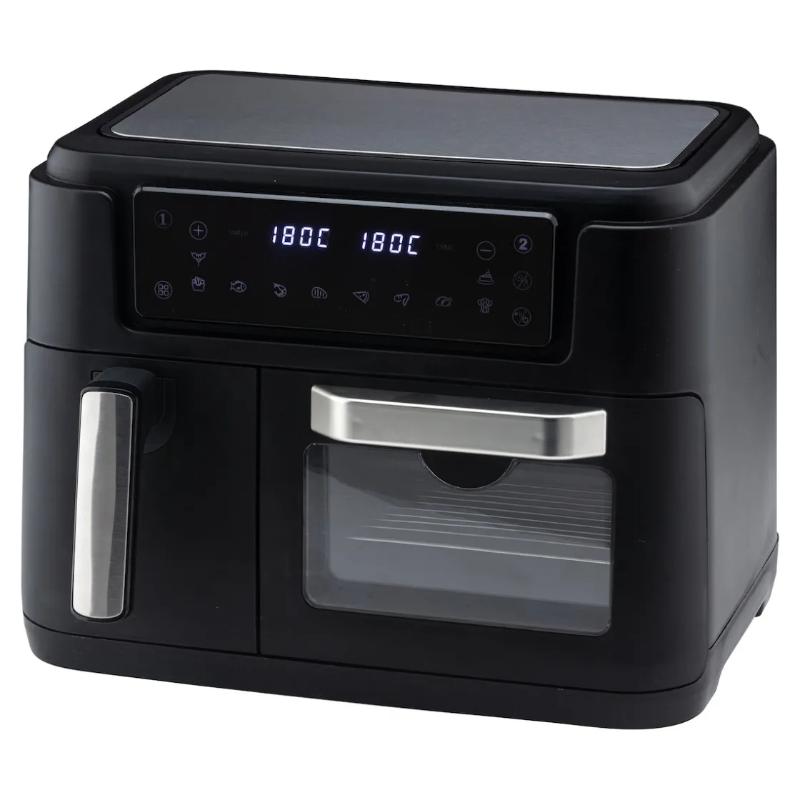 Diese digitale Heißluftfritteuse ist ideal für kleine Haushalte und bietet schnelles, energiesparendes Aufheizen sowie schonendes Garen, Frittieren und Überbacken. Mit ihr zaubern Sie im Handumdrehen unzählige köstliche Gerichte. Dieses multifunktionale Gerät ersetzt kompakt Backofen, Fritteuse, Toaster, Mikrowelle, Grill, Sandwichmaker und Pfanne.