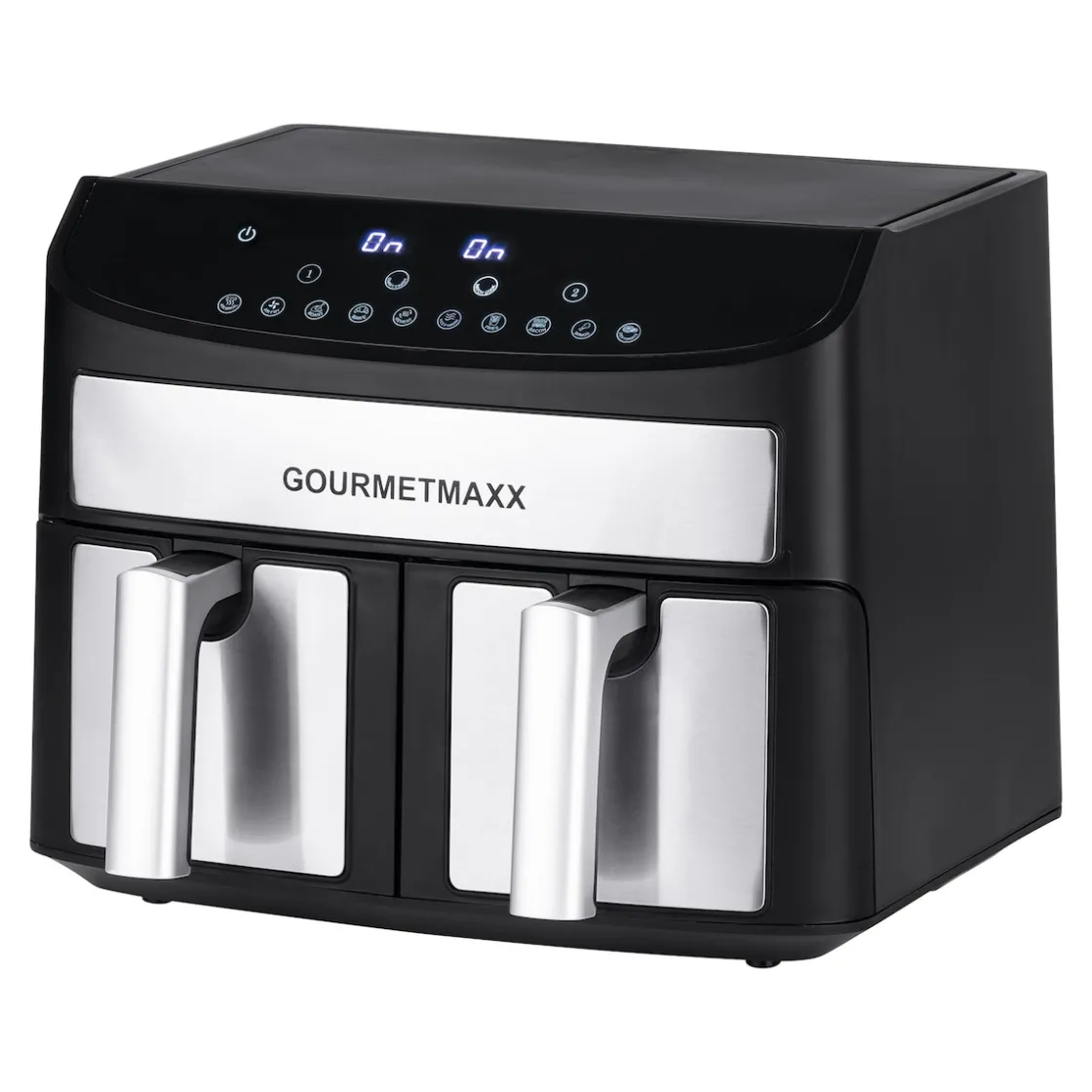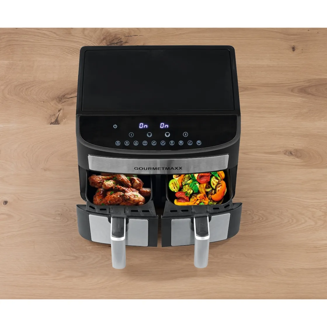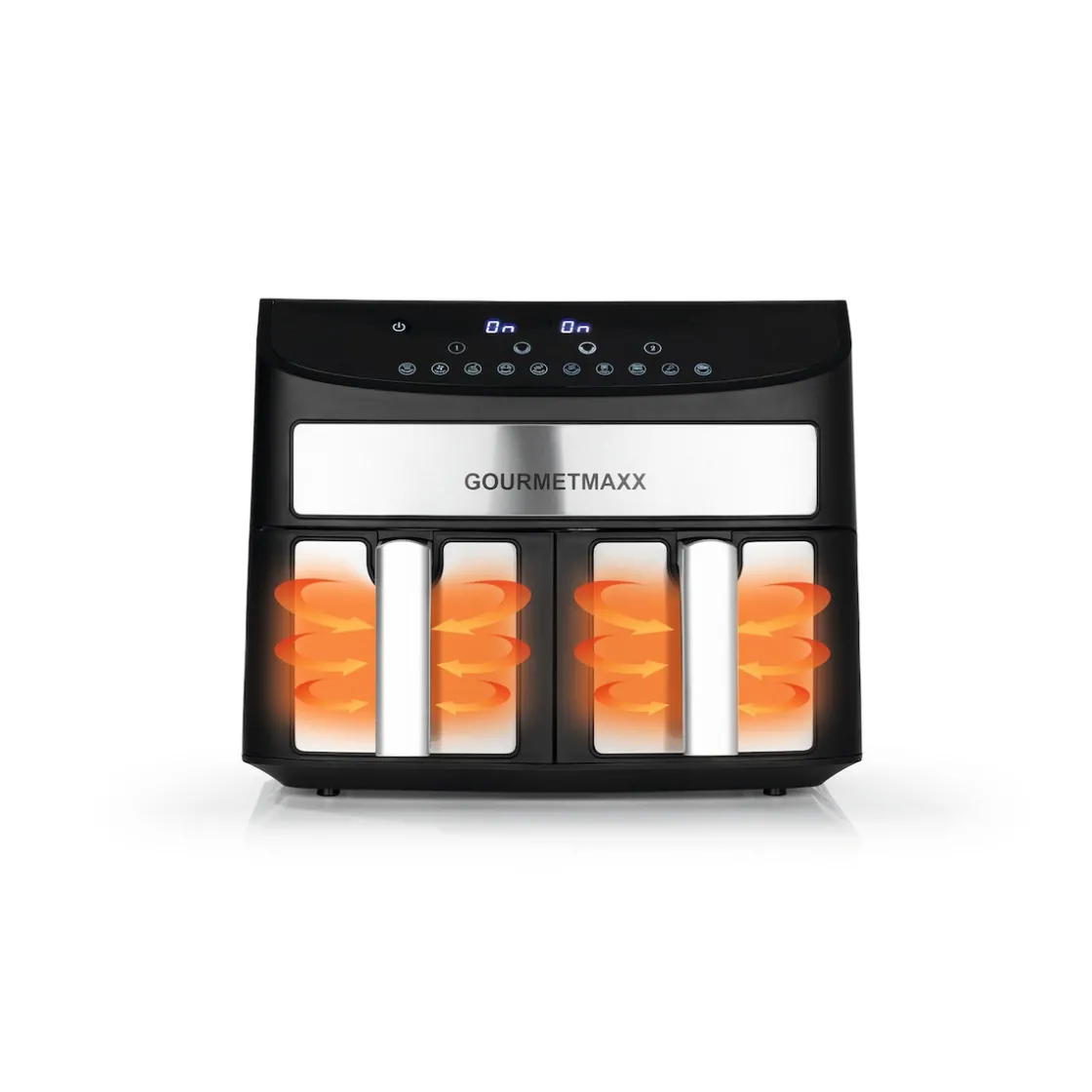 Unsere Doppelkammer-Heißluftfritteuse definiert das Kochen neu. Sie vereint Heißluftofen, Grill und Fritteuse in einem Gerät mit Touchdisplay. Mit 10 voreingestellten Programmen wird das Treffen des perfekten Garpunkts zum Kinderspiel. Wählen Sie individuelle Programme für jede Kammer und synchronisieren Sie die Fertigstellungszeiten. Oder nutzen Sie ein Programm für beide Kammern, um doppelte Mengen in gleicher Zeit zuzubereiten. Der 60-Minuten-Timer und die Warmhaltefunktion bieten zusätzliche Flexibilität. Dank Heißluftfunktion erleben Sie fett- und geruchsarme Zubereitung. Der Temperaturbereich von ca. 80–200 °C und 10 Programme (Steak & Fisch, Frittieren, Rösten, Kuchen, Aufwärmen, Warmhalten, Pommes frites, Bacon, Chicken-Wings, Dörren) eröffnen endlose Möglichkeiten. Anti-Rutsch-Füße sorgen für sicheren Halt in der Küche. Willkommen in der Zukunft des Kochens!