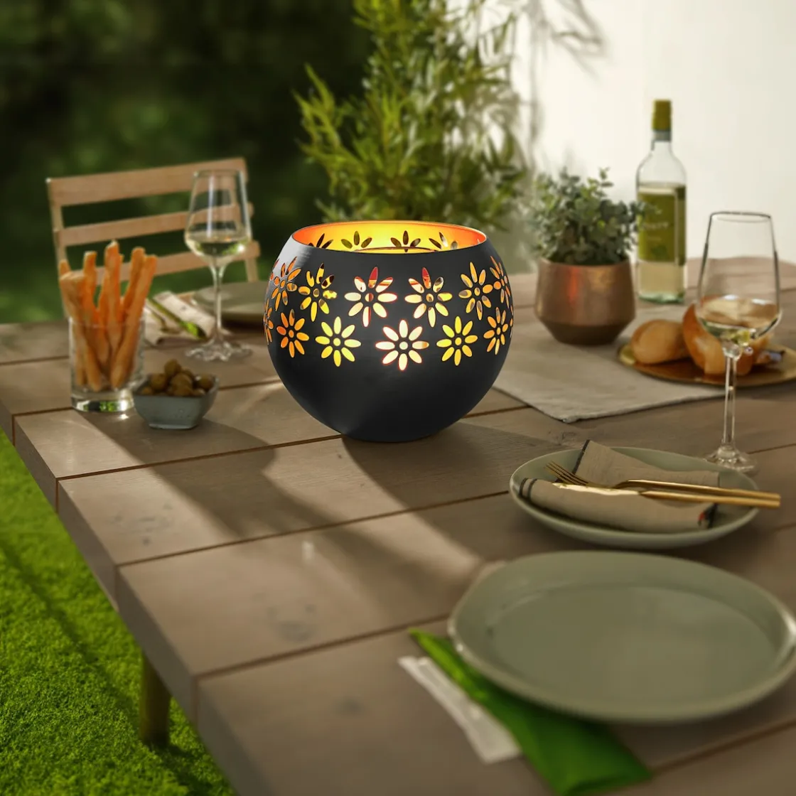 In lauen Sommernächten blüht mit dieser Leuchte romantische Stimmung auf. Die filigranen Blütenausstanzungen lassen das Licht sanft durchscheinen und verleihen jeder Tischdekoration einen zauberhaften Charme.