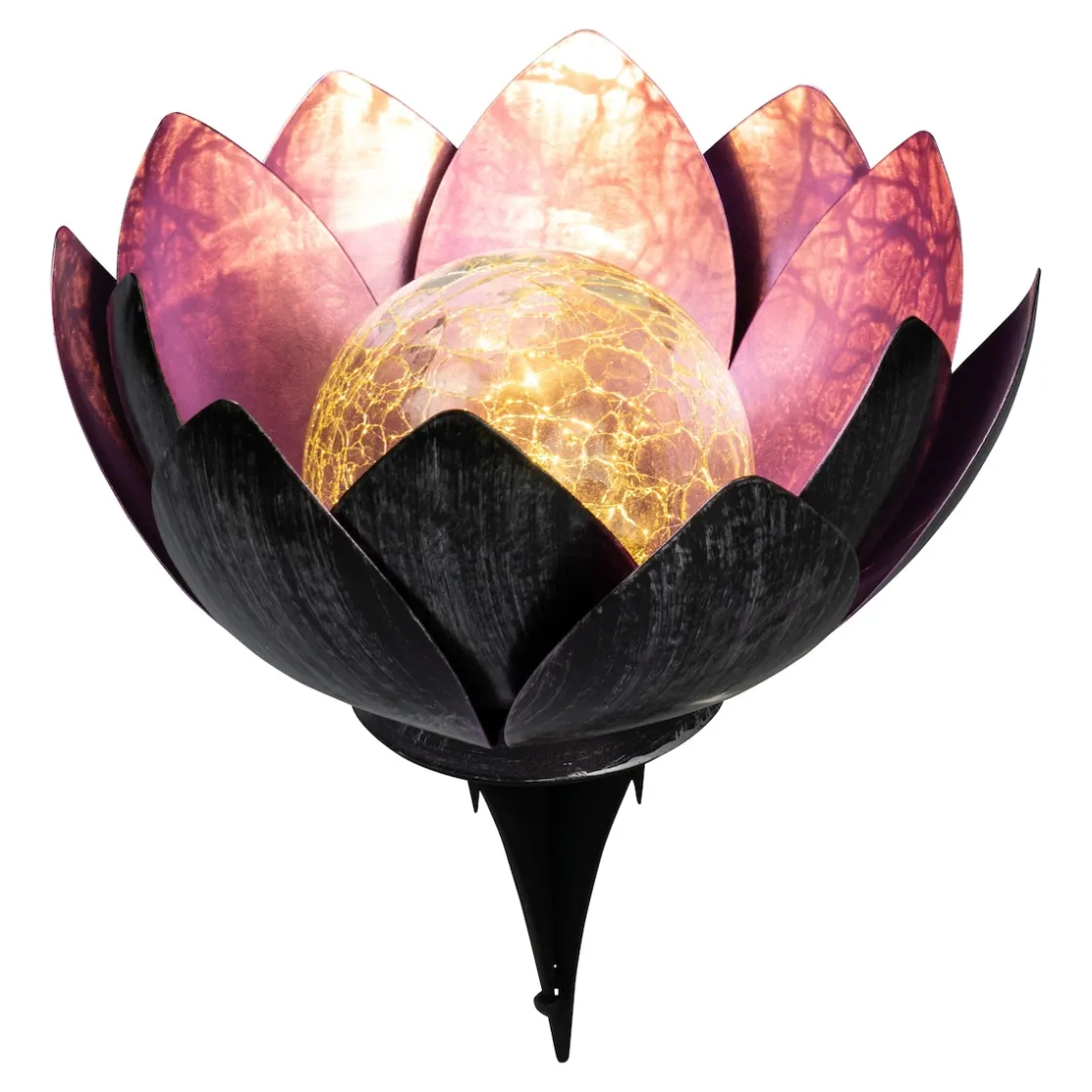 Der Lotus gilt als Symbol für Reinheit, Kreativität – und Erleuchtung! Im Garten oder auf dem Tisch platziert, erstrahlt die Kugel der opulenten Metallblüte bei Anbruch der Dämmerung in warmweißem Licht. Die changierenden Farben der Blütenblätter wirken magisch und vereinen sich zu einem romantischen Lichtspiel. Sensationell effektvoll! Mit Erdspieß.