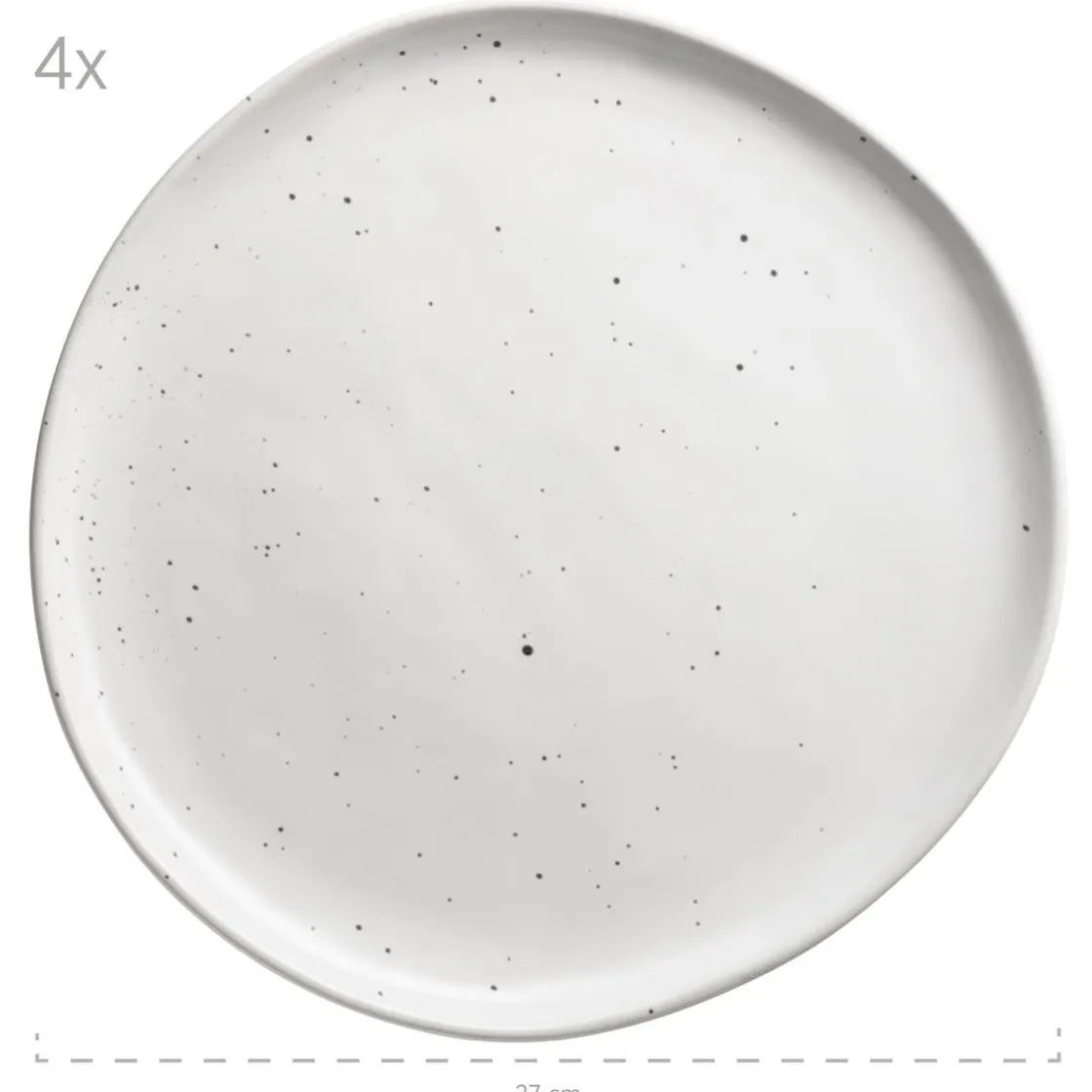 Die Keramikgeschirr Serie „Andoro“ vereint eine außergewöhnliche, unregelmäßige Form mit einer semi-matt glänzenden weißen Glasur, die mit dunkelgrauen Sprenkeln durchzogen ist. Die Speiseteller, Dessertteller, Schalen und Kaffeebecher sind vielseitig einsetzbar, sodass das Kombiset in Ihrem Zuhause oft zum Einsatz kommt. Das modern-schlichte Geschirr Set lässt sich perfekt zu individueller Dekoration im Vintage Stil kombinieren und lässt Ihre Speisen so richtig toll zur Geltung kommen.