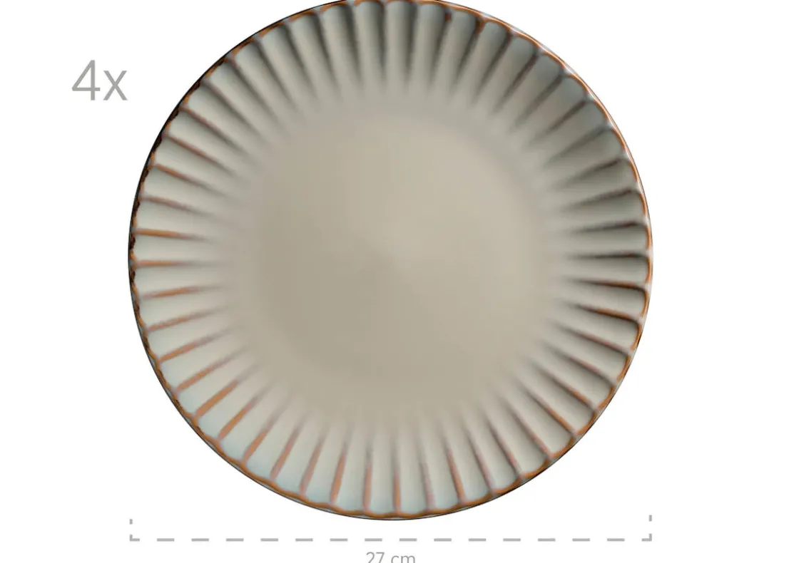 Die aufregende Kombination aus runden Retro-Formen mit Wellenrelief einerseits und einer modernen, unregelmäßigen Glasurtechnik mit schwarzen Akzenten andererseits verleiht der Tafelgeschirr-Kollektion „Confino“ eine ganz besondere Eleganz. Die Keramikgeschirr-Serie der österreichischen Traditionsmarke MÄSER wird aus hochwertigem Steinzeug gefertigt, welches nicht mit dem deutlich brüchigeren Steingut zu verwechseln ist. Die natürlich wirkenden Farbvarianten dieser Kollektion lassen sich harmonisch miteinander kombinieren. Dieses Set wird in einer vielfach auf Bruchsicherheit getesteten Paketversandverpackung aus nachhaltigen Materialien versendet. Bitte beachten Sie: Diese Kollektion wird händisch bunt lasiert, wodurch minimale Unebenheiten der Glasur, kleine Einschlüsse und leichte Farbabweichungen auftreten können. Zur besseren objektiven Vergleichbarkeit gehen unsere Füllmengenangaben von einer randvollen Befüllung aus.