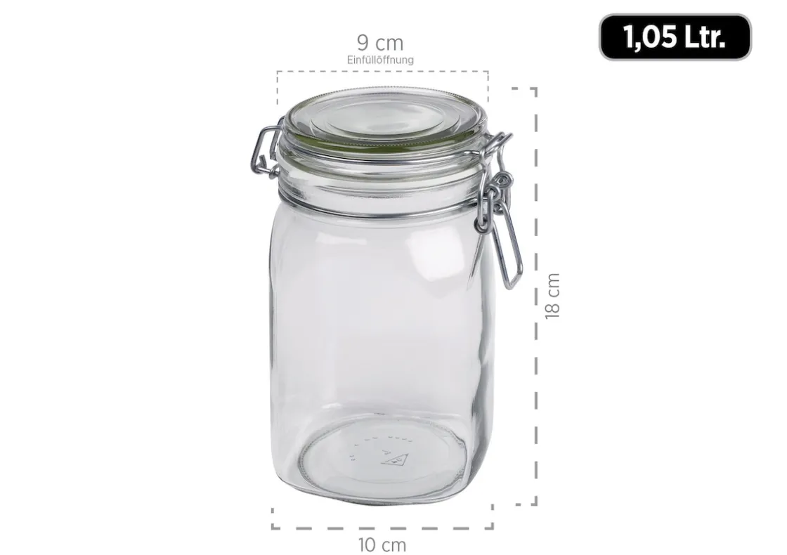 Die dickwandigen Einkochgläser sind spülmaschinentauglich, backofengeeignet und können auch im Tiefkühler eingefroren werden. Besonders die praktische eckige Form ermöglicht äußerst platzsparendes Lagern.