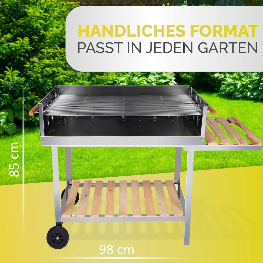 Mit dem Grillwagen wird jedes BBQ zum Erfolg. Der handliche Wagen passt in jeden Garten und lässt sich einfach verstellen, um perfekte Grillergebnisse zu erzielen. Mit den Rädern ist der Grill mobil und flexibel und kann jederzeit den Wünschen entsprechend positioniert werden. Der Grillwagen ist besonders langlebig und robust. Ob saftige Steaks oder knackiges Gemüse, er ist der perfekte Begleiter für jedes BBQ und lässt Grillherzen höher schlagen.