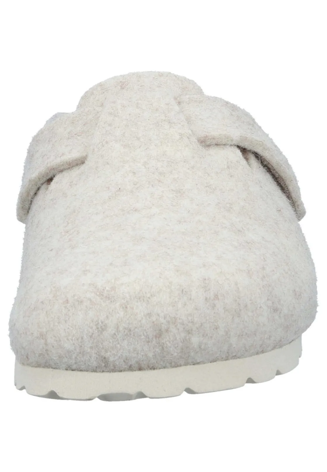 Bei diesem Produkt handelt es sich um einen Schuh aus der Kategorie Klassische Hausschuhe für Damen. Als Obermaterial wurde Wollfilz verwendet und im inneren Bereich des Schuhs wurde ungefüttert und weiche Lederdecksohle, gepolstertes Naturform-Korkfußbett verarbeitet. Die Schuhweite dieses Artikels ist Weite G und somit normal. Als Verschlussart wurde Schlupfschuh gewählt und die Leichtzellsohle rundet das Produkt ab. Der Artikel fällt normal aus, bitte die gewohnte Größe bestellen. – Schuhweite: Weite G –