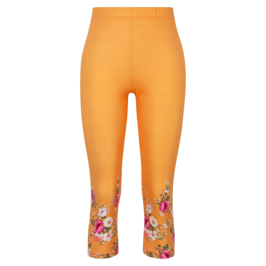 Die bequeme Capri-Leggings mit floralen Ornamenten am Beinabschluss überzeugt durch ihren dehnbaren Komfortbund und das angenehm weiche Material, das für eine perfekte Passform und höchsten Tragekomfort sorgt.