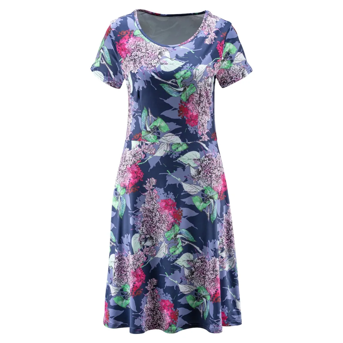Dieses Sommerkleid lässt Sie aufblühen! Die Länge umschmeichelt perfekt Ihre Knie, der lässige Schnitt passt sich luftig-leicht Ihrer Figur an. Die kurzen Ärmel sorgen für viel Freiheit und bedecken zugleich die Schulterpartie. Mit modischem Rundhalsausschnitt.