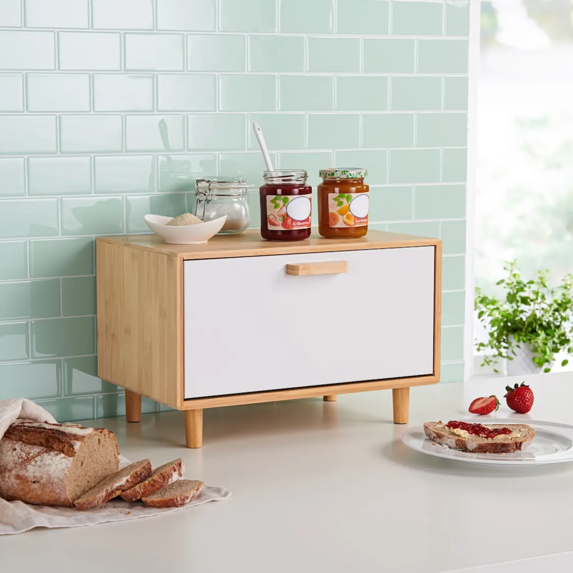 Ärgern Sie sich nie wieder über ausgetrocknetes oder verschimmeltes Brot! Dieser Brotkasten aus Bambus schafft Abhilfe, indem er die Feuchtigkeit aus der Luft entzieht und die Backwaren länger frisch hält. Und: Das stilvolle Design macht richtig was her in Ihrer Küche.