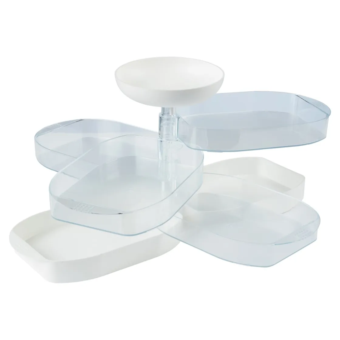 Ob auf dem Frühstückstisch, zum Abendbrot oder bei der nächsten Party – mit diesem Garnier-Buffet haben Sie Appetitliches ganz schnell angerichtet. Sparen Sie sich das umständliche Umschichten vom Vorratsbehälter auf die Servierschale! Sie brauchen nur noch dieses Garnier-Buffet! Darin bewahren Sie Wurst, Käse und kleine Häppchen frisch auf, bis Sie es bei Bedarf einfach aus dem Kühlschrank holen und platzsparend auf dem Tisch auffächern.