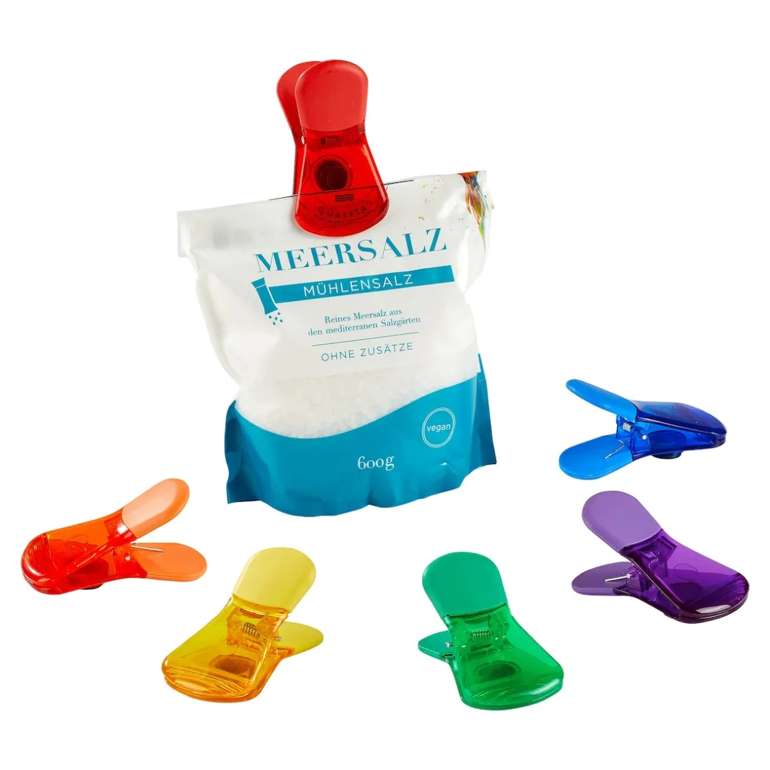 Diese Klipps halten Tüten fest verschlossen. Dank Magnet können auch Notizen etc. am Kühlschrank platziert werden.