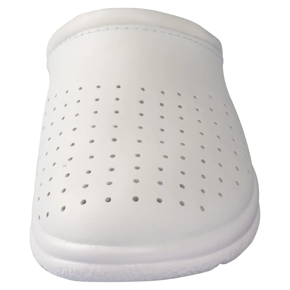 Mit der Lederpantolette für Herren gönnen Sie sich und Ihren Füßen maximalen Komfort und das bei jedem Schritt. Das anschmiegsame Obermaterial (beschichtetes Leder) umschließt den Fuß angenehm und sorgt mit den integrierten Lüftungslöchern für ein gutes Fußklima – auch bei warmem Wetter. Die Laufsohle dämpft die Schritte, sodass Sie bequem gehen können. Ob zu Hause oder im Büro: Diese Pantolette gehört sicher schon bald zu Ihren Lieblingsschuhen.