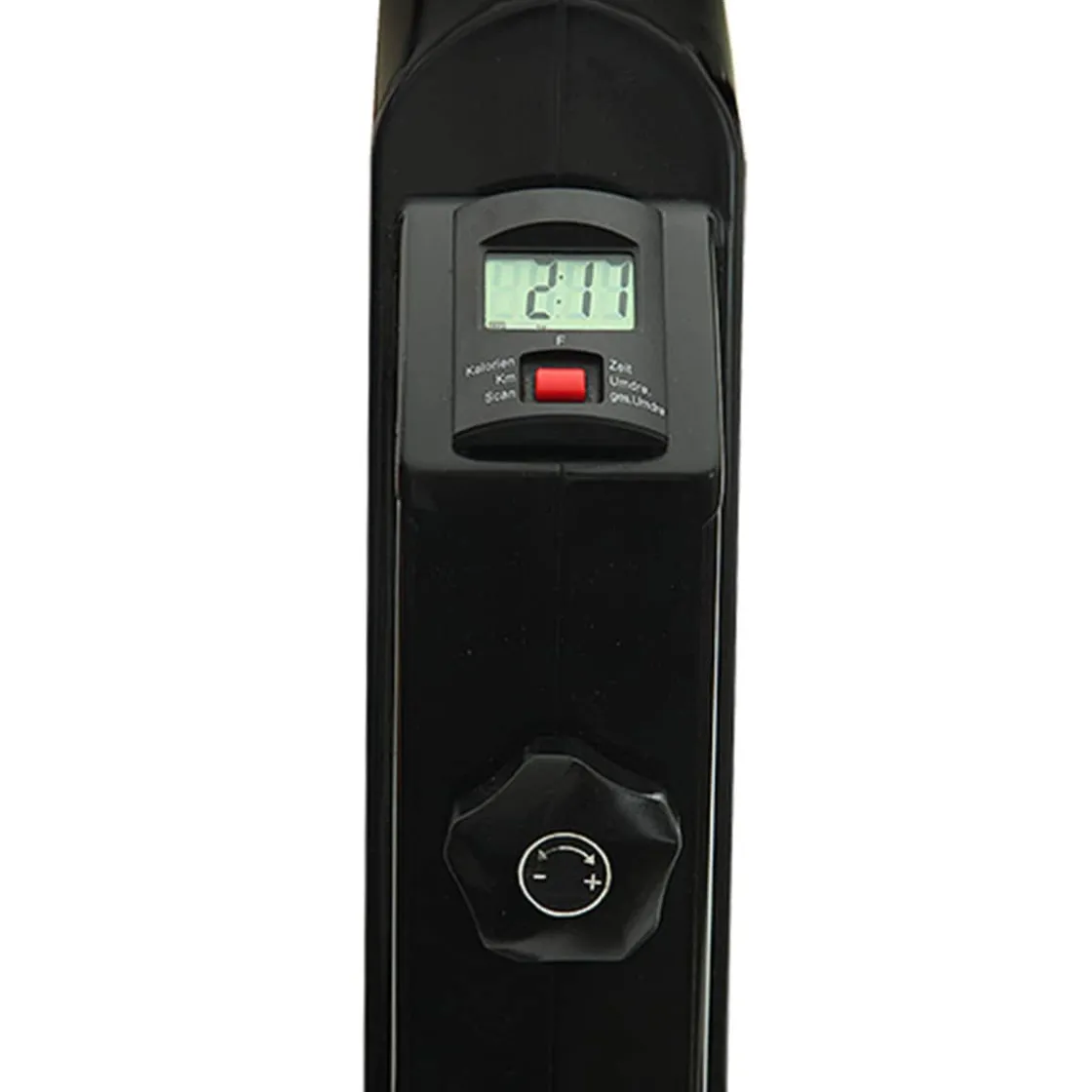 Der Widerstand ist stufenlos über die verstellbare Schleifbandbremse regulierbar und der digitale Computer zeigt Zeit, Entfernung, ca. Kalorien, Pedalumdrehungen, Pedalumdrehung total und Scan im Display an.