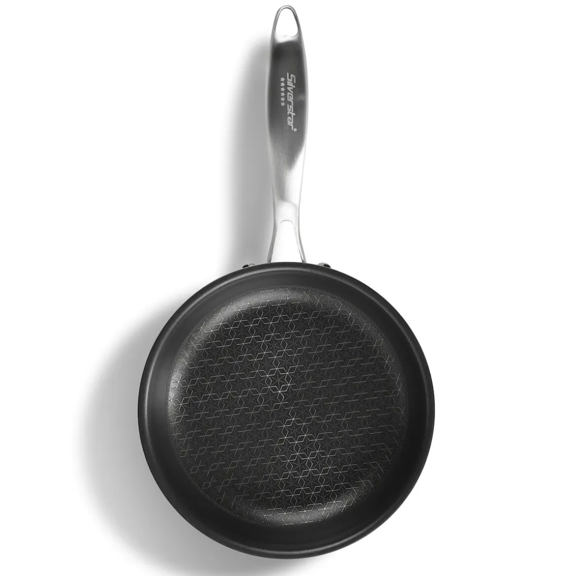 Silverstar Unzerstörbar! Patentiert! Professionell! Wenn es um die Pfanne für das perfekte Steak geht, ist das die erste Wahl: Die Profi Edelstahl Pfanne von Silverstar! Die patentierte Pfanne vereint die besten Eigenschaften einer Edelstahlpfanne mit denen einer Antihaftpfanne. Wie das funktioniert? Der Pfannenkörper besteht aus dem Dreischicht-Material „Edelstahl – Aluminiumkern – Edelstahl“. Diese Materialkombination gewährleistet eine schnelle Erhitzung des Kochgeschirrs sowie eine perfekte und gleichmäßige Wärmeverteilung vom Pfannenboden bis zum Rand. Im letzten Produktionsschritt wird die Pfanne antihaftversiegelt. Es handelt sich dabei um eine 100 % unzerstörbare Innenboden-Beschichtung, die selbst Küchenhelfern aus Metall standhält. Grund dafür ist die spezielle Silverstar Antihaftbeschichtung mit erhöht gelegener Sterne-Struktur aus Edelstahl. Die filigrane Struktur bewirkt, dass Sie Ihr Steak oder Grillgemüse scharf und bei hohen Temperaturen wie in einer klassischen Edelstahlpfanne anbraten können. Gleichzeitig lässt die Antihaftversiegelung die Speisen leicht aus dem Kochgeschirr lösen. Ein punktgenaues und gleichmäßiges Bratergebnis ist damit garantiert. Durch die Sterne-Struktur ist die Pfanne außerdem unempfindlich gegen Kratzer und Abrieb. Die Pfannen sind bis zum Schüttrand antihaftbeschichtet, was ein einfaches Herausgleiten der Speisen auf den Teller garantiert. Die antihaftversiegelten Silverstar Edelstahlpfannen sind für alle Herdarten geeignet und können selbstverständlich auch auf Herden mit Induktion verwendet werden. Im Backofen hält das Material Temperaturen bis 220 °C stand. Also ab mit der Pfanne und dem gebratenen Gemüse in den Backofen zum Gratinieren. Hmmm … Und die Reinigung? Ist genauso unkompliziert wie die Handhabung, denn hier kommen die Vorzüge der Antihaftpfanne erneut zum Vorschein: die Pfanne einfach mit heißem Wasser, einem milden Spülmittel und einem weichen Schwamm auswischen. Das war’s! Mit dem im Lieferumfang enthaltenen Mikrofasertuch können Sie Ihre Pfanne wieder auf Hochglanz bringen. 1 Bratpfanne, ø ca. 20 cm, Höhe: ca. 4 cm, ca. 1 l 1 Mikrofasertuch Die wichtigsten Vorteile auf einen Blick: Patentierte Edelstahlpfanne mit 100 % unzerstörbarer Innenbeschichtung dank Antihaftversiegelung mit Sterne-Struktur aus Edelstahl Robuster Pfannenkörper aus Dreischicht-Materialkombination Harte, kratzfeste und resistente Innenbeschichtung mit sehr langer Lebensdauer Ideal zum scharfen Anbraten, Kochen, Braten, Gratinieren, Backen Inklusive Mikrofasertuch für ein glänzendes Finish Leichte Reinigung dank Antihaftversiegelung Extra starker, verzugsfreier Boden Bodenstärke: 2,8 mm Für alle Herdarten geeignet, auch Induktion Backofengeeignet bis 220 °C Material: 3-Schicht-Kombination aus „Edelstahl, Aluminiumkern, Edelstahl“ mit Antihaftversiegelung Reinigungs- und Pflegetipps: Vor dem ersten und nach jedem Gebrauch empfehlen wir, Ihr Koch- oder Backgeschirr mit etwas Wasser und einem milden Spülmittel gründlich auszuwaschen. Achten Sie dabei darauf, dass der Artikel ausreichend abgekühlt ist, bevor Sie mit der Reinigung beginnen. Nicht mit kaltem Wasser abschrecken. Dank der Antihaftwirkung wird die Reinigung per Hand empfohlen.